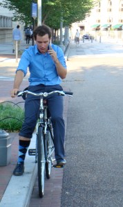 Yesterday, I was on my way home and spotted this rider. As he paused to take a phone call, I couldn’t help but notice his fancy argyle socks. They’re awesome!