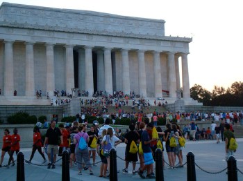 What’s the Lincolnometer, you ask? It is a gauge of what’s going on with tourism and to some degree, the weather, in Washington, D.C. The Lincolnometer is largely based on the people lurking around the Lincoln Memorial at any given moment. The Lincoln Memorial is ideal for assessing tourist activity (and the weather) because: