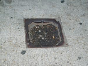 My sad camera can’t give an accurate picture of the depth of this hole, but I estimate it to be 10 inches squared and about four inches deep. Do I exaggerate? I don’t know, it’s a busy intersection which gives me no time to bust out my tape measure.