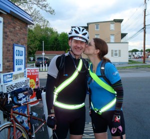 A romantic moment at a convenience store in reflective gear. How can you beat that? This was our final rest stop before the finish.