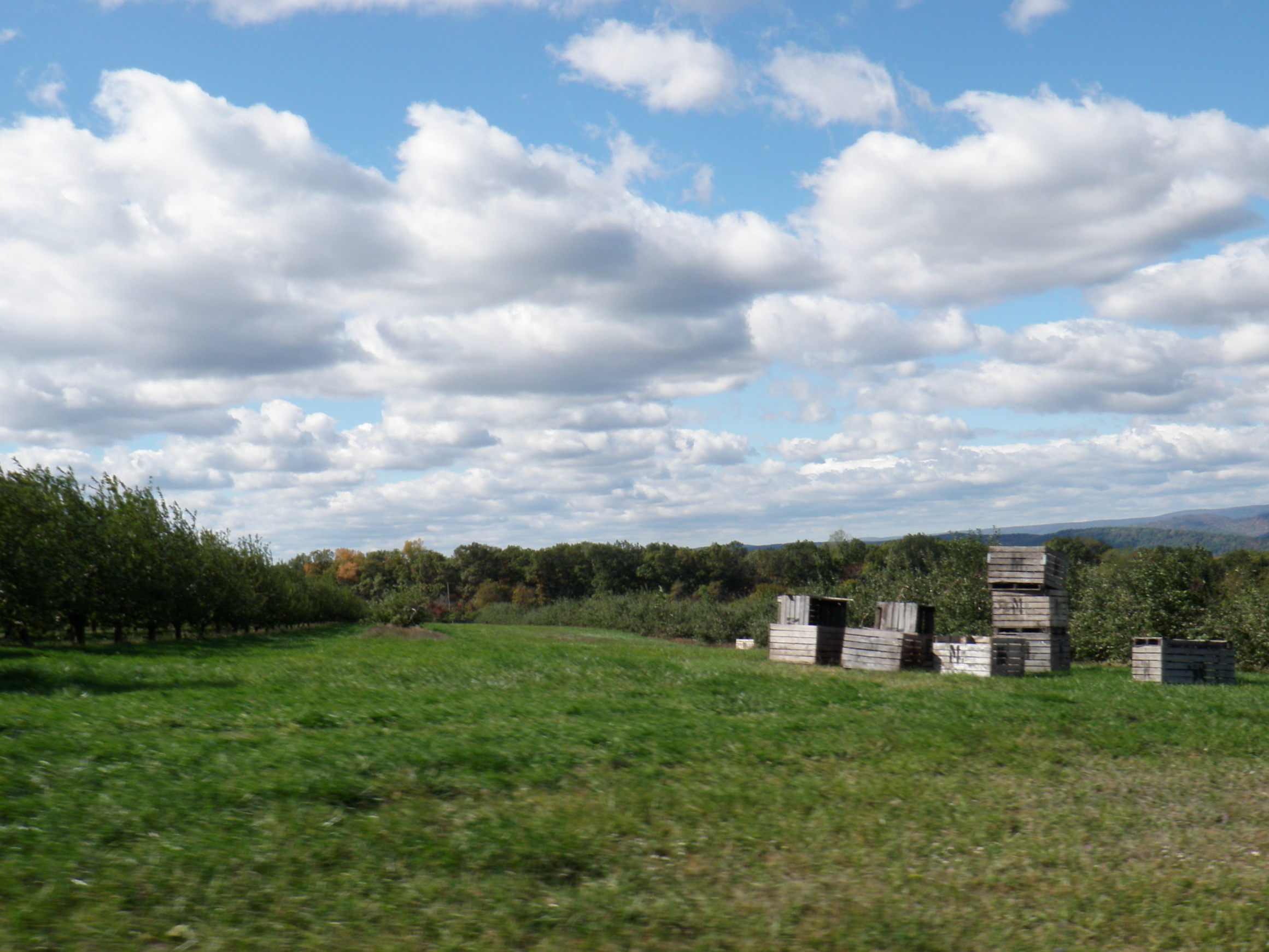 This photo, from October, was taken after we had climbed to the High View orchard area in West Virginia. I was so proud of Felkerino and me for clawing our way up there that I felt obligated to memorialize the moment in a photo. I like the look of the apple crates and the sky was incredible that day.