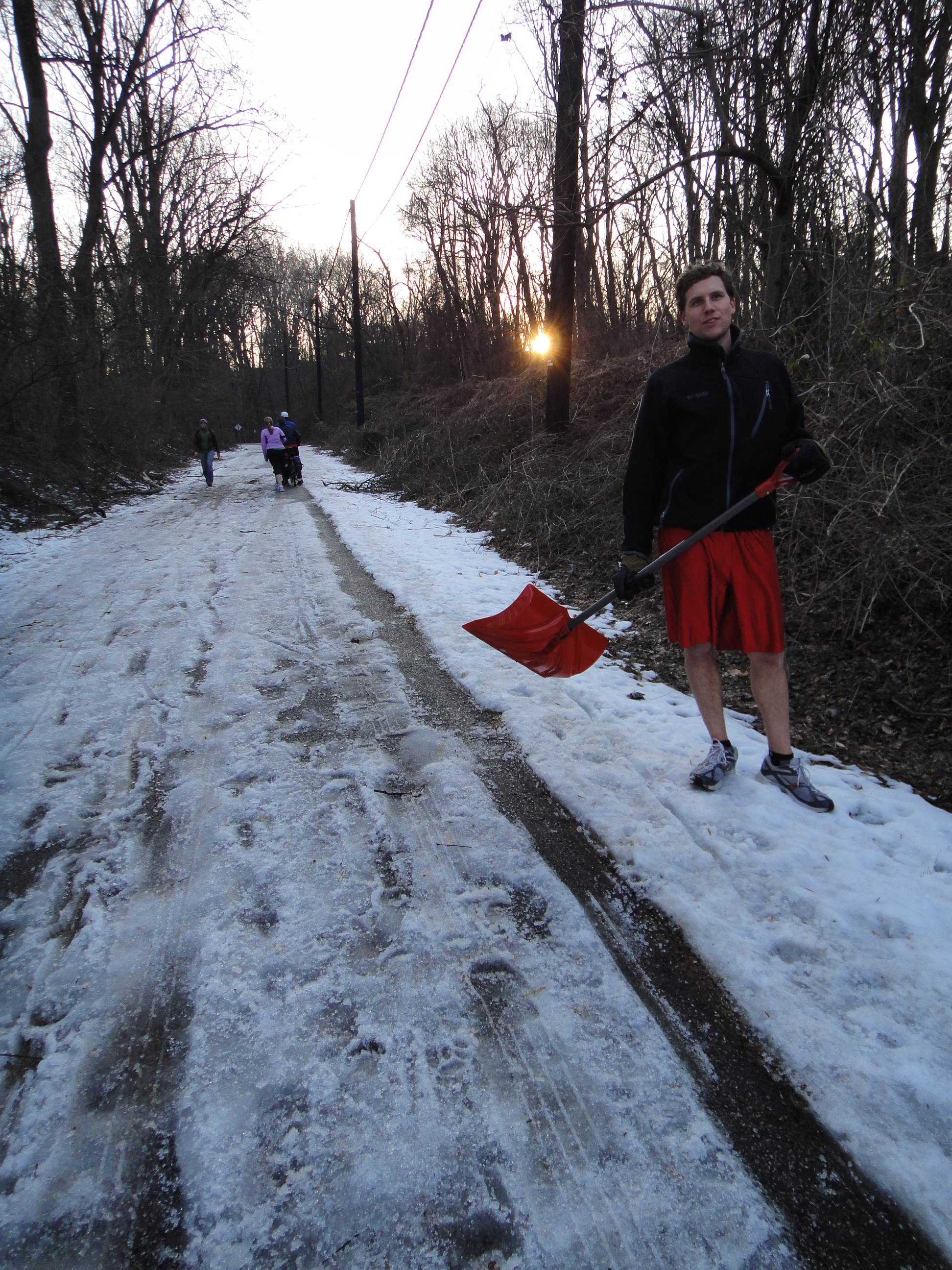 On the return to D.C., we decided to take the Capital Crescent Trail (from Bethesda). While making our way down to Georgetown, we came upon a person shoveling a path through one of the remaining icy patches.