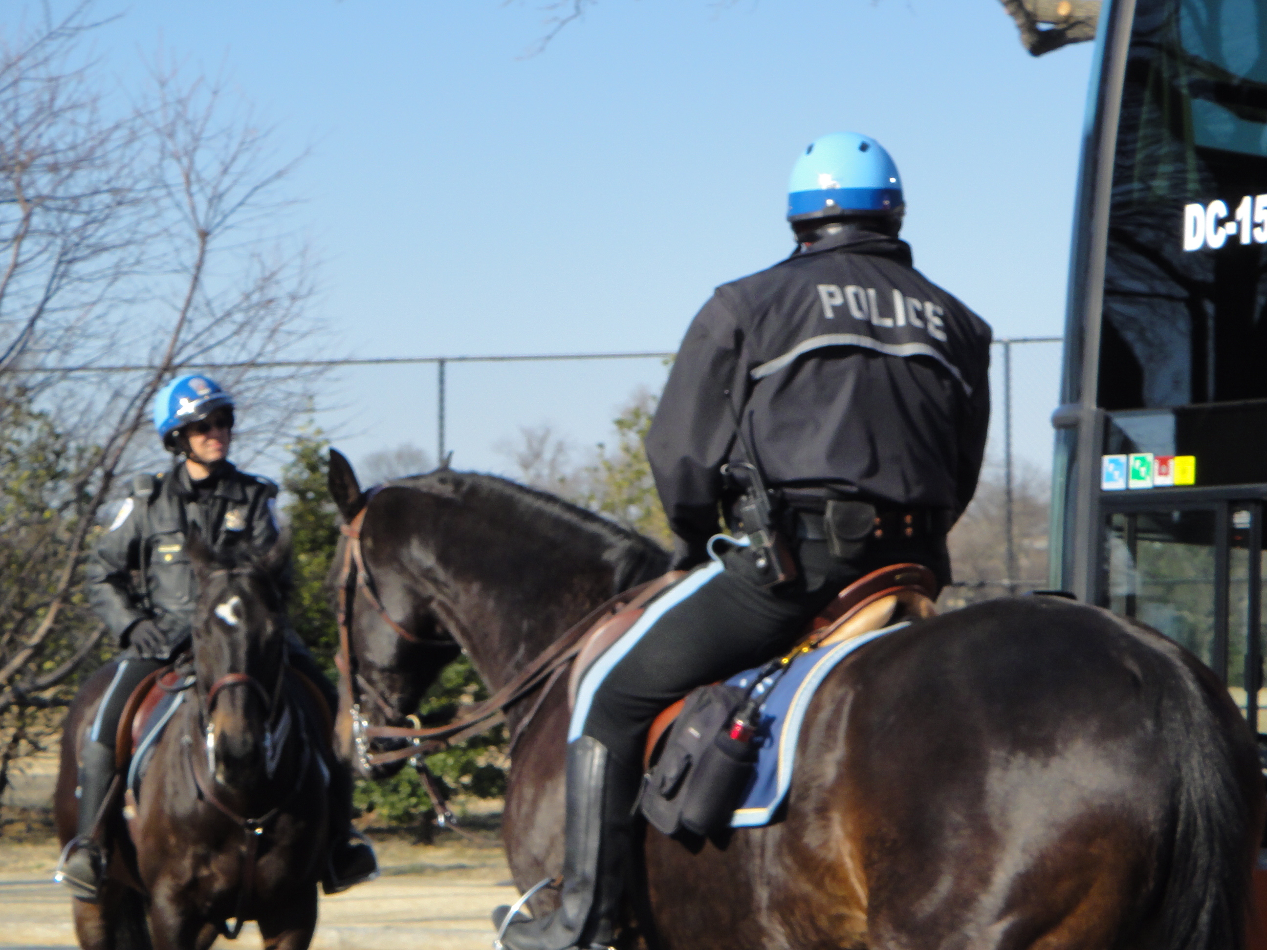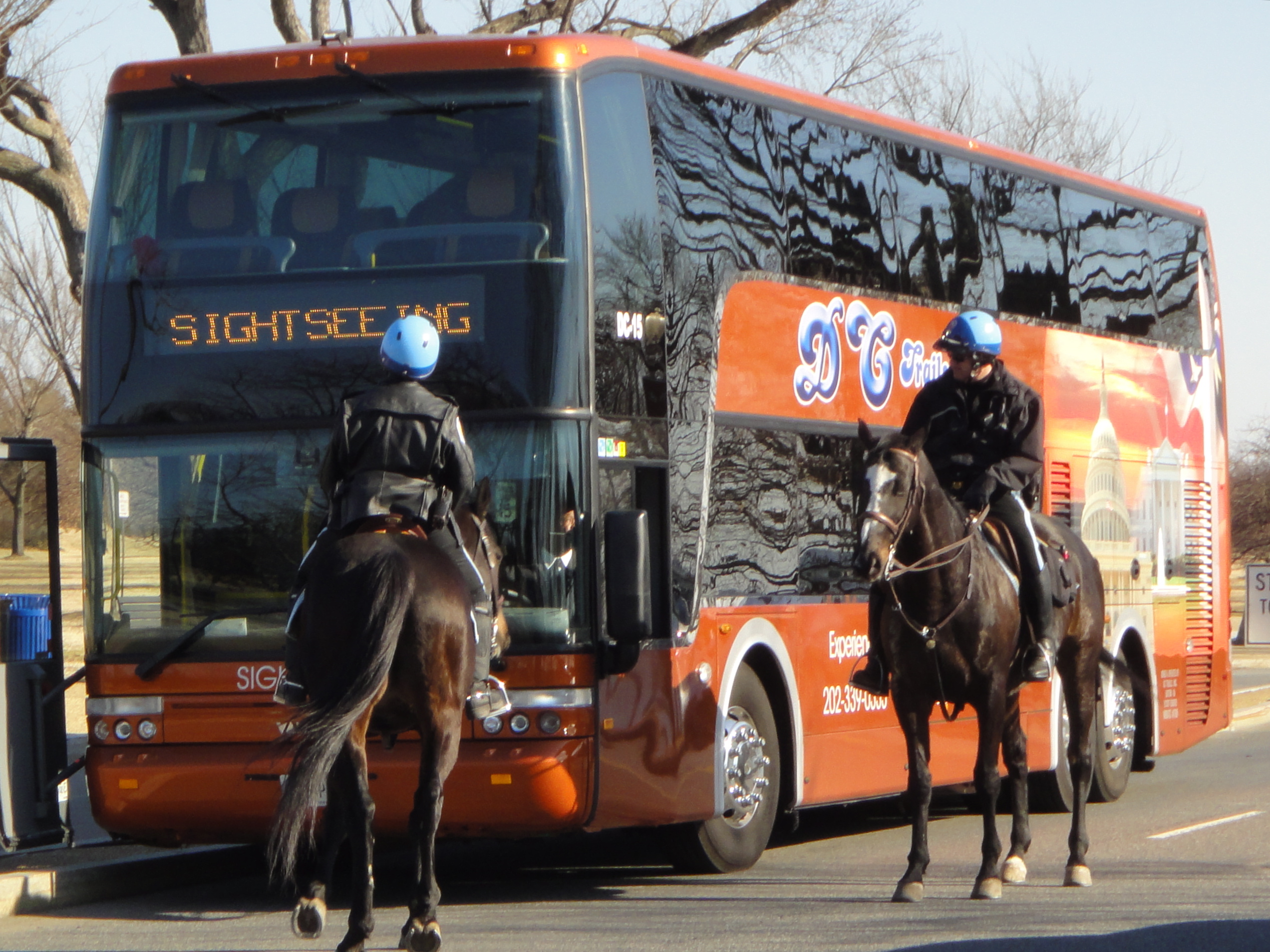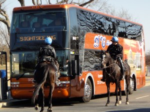 It looked so funny that I had to grab the cam and memorialize the moment. What are the U.S. Park Police doing? Is there something wrong with the bus? Do they wish they were driving the bus instead of riding horses?