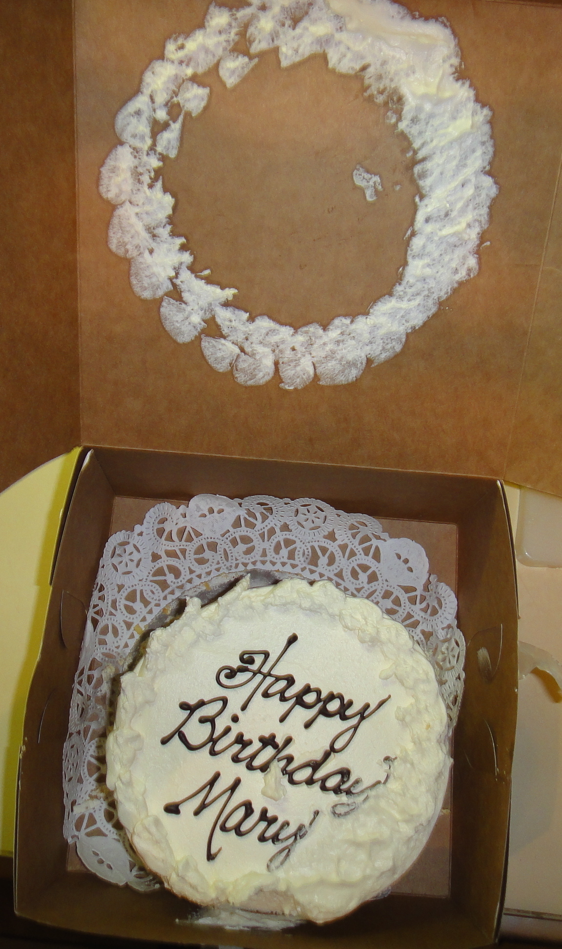 Sometimes I wonder if Felkerino reads my blog. I think I’ve given some good ideas about carrying baked goods, such as cupcakes, and I would have thought these helpful hints might transfer over to cake transport. When I opened up the cake box, here is what I found.