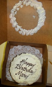 And now a return to the topic at hand, birthday cake commuting. This past week I celebrated my birthday. Another year older, another year ____________ (insert clever word here). Because it was my birthday, Felkerino was in charge of tracking down a cake. You just can’t have a birthday without cake, and I don’t believe in cupcakes for birthdays.