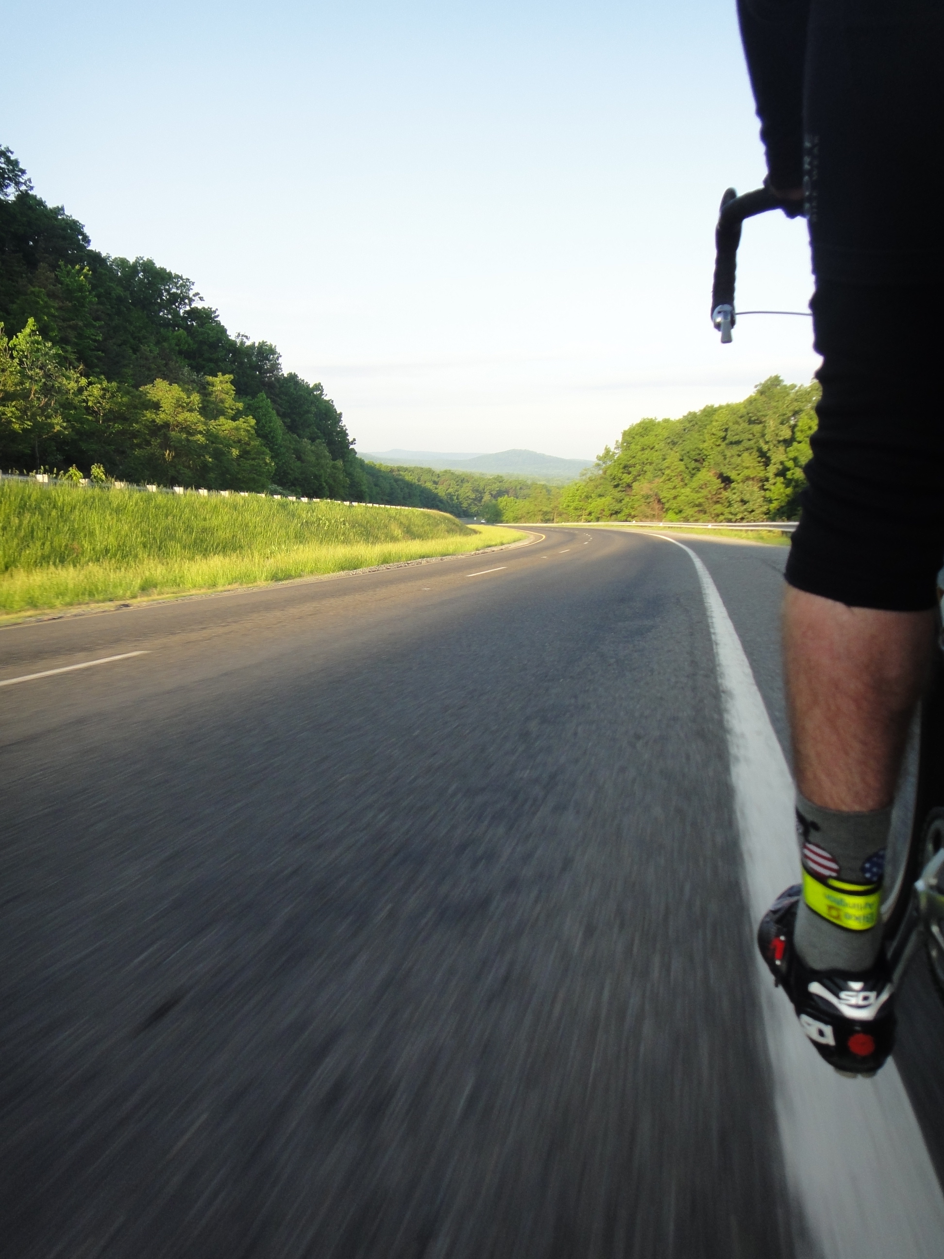 Descending Snickers Gap in the morning sun. 50 mph, baby!