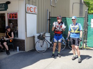 150 miles into the ride, close to “Short Cut Road,” which was my favorite street name of the ride, Felkerino and I started to feel like we were slogging along and in need of a break. Felkerino’s eagle eye caught sight of a pop machine underneath the awning of a church and Felkerino, Alec, and I bee-lined our way over to it.  Pops were only fifty cents. What a bargain!