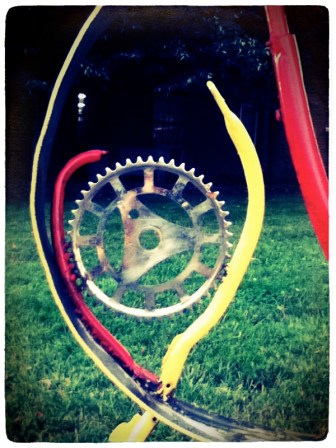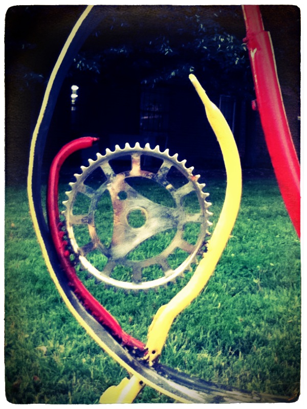 Conceptual. Cool! Slightly intimidating. Botanical steel! If O’Keefe had done bike sculptures, she might have made this?