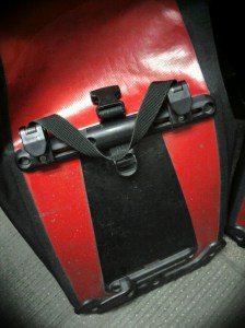 First, they are simple and come with no pockets. These Ortliebs are just solid waterproof pannier “sacks” that are easy to close. Second, the mounting system is adjustable and easy to attach and remove from the bike.