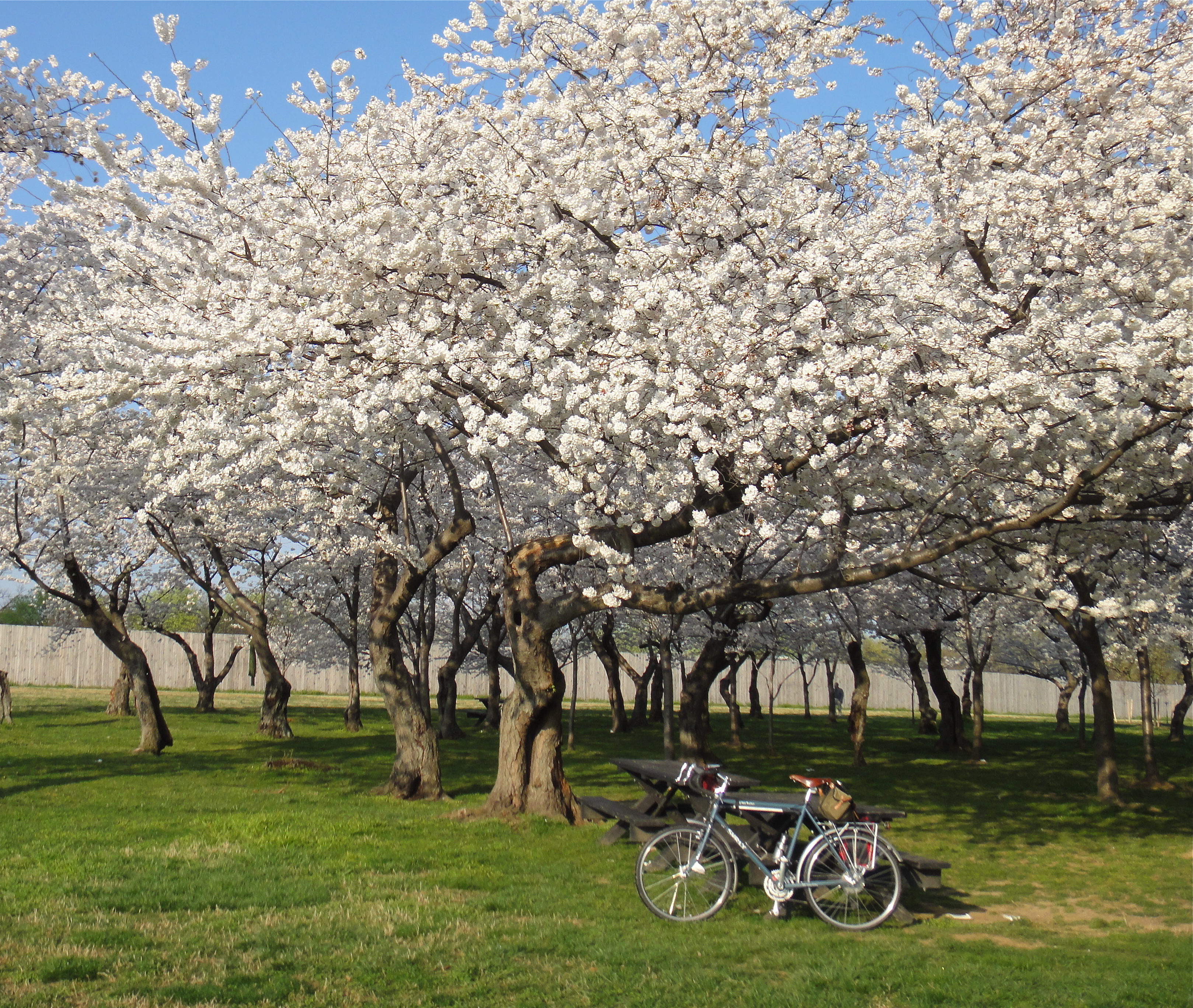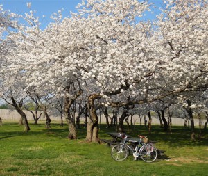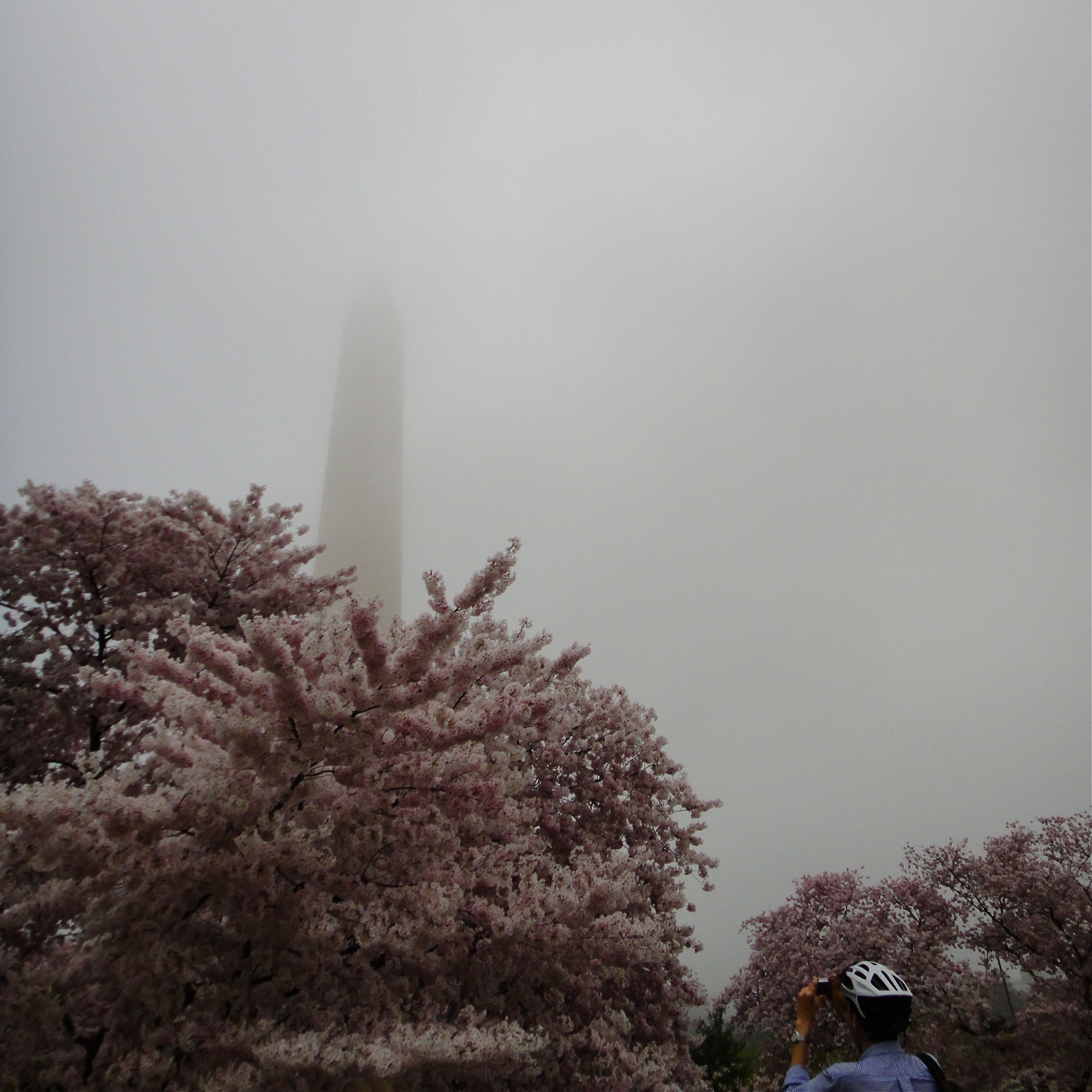 A relaxing Monday morning moment with the Surly and the cherry blossoms by 17th and Constitution.My friend and I thought we should start a photo company. We’re going to call it Cheesy Monument Photos, Inc. Taken Wednesday around midday.In other news, the zombies visited the blossoms. They did not understand the cherry blossom hoopla, and moaned about how they were too pink, too fluffy, and too sunny for their tastes. Life is hard for the zombies.Thursday morning fog at Independence and 15th. A cyclist taking a photo of a cyclist taking a picture of the Monument and blossoms. META! They were stunning today.“I’m grabbing the Jefferson Memorial. Take that, cherry trees and tourists!” Zombies can get so upset by sunny spring days and flowers. Taken Thursday afternoon.Everybody was on Hains Point Thursday evening. Cars, roadies, tourists, and Felkerino. We all were treated to a gorgeous big orange sunset, and the roadies even let Felkerino draft them for a few minutes with his SimpleOne. What a day!