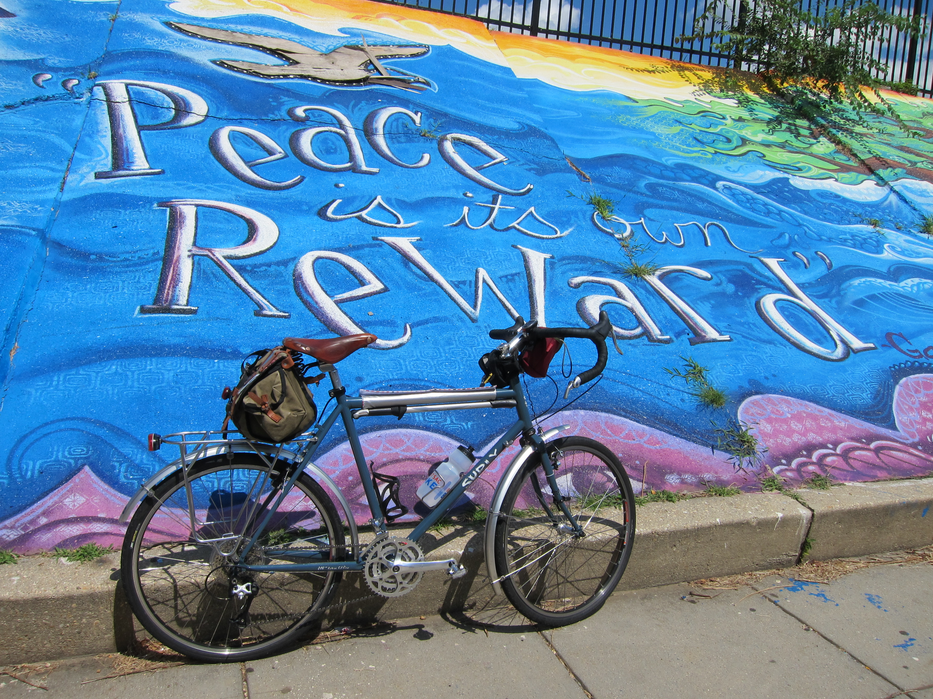 In case it isn’t evident from the photos, my Surly Long Haul Trucker was my mural tour steed. Around town, it’s hard to imagine riding anything narrower than 32s. With speed of no concern and the bumpy D.C. streets to contend with, the Surly was an excellent choice.