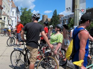 I ended up riding with a few new people on this ride, including Phil, one of the BicycleSPACE owners. We also talked a little bit with Erik, another one of the founders of the shop. I wish I had an opportunity to meet more riders on these rides, but with all of the maneuvering through the city (in traffic) it doesn’t always work out that way.