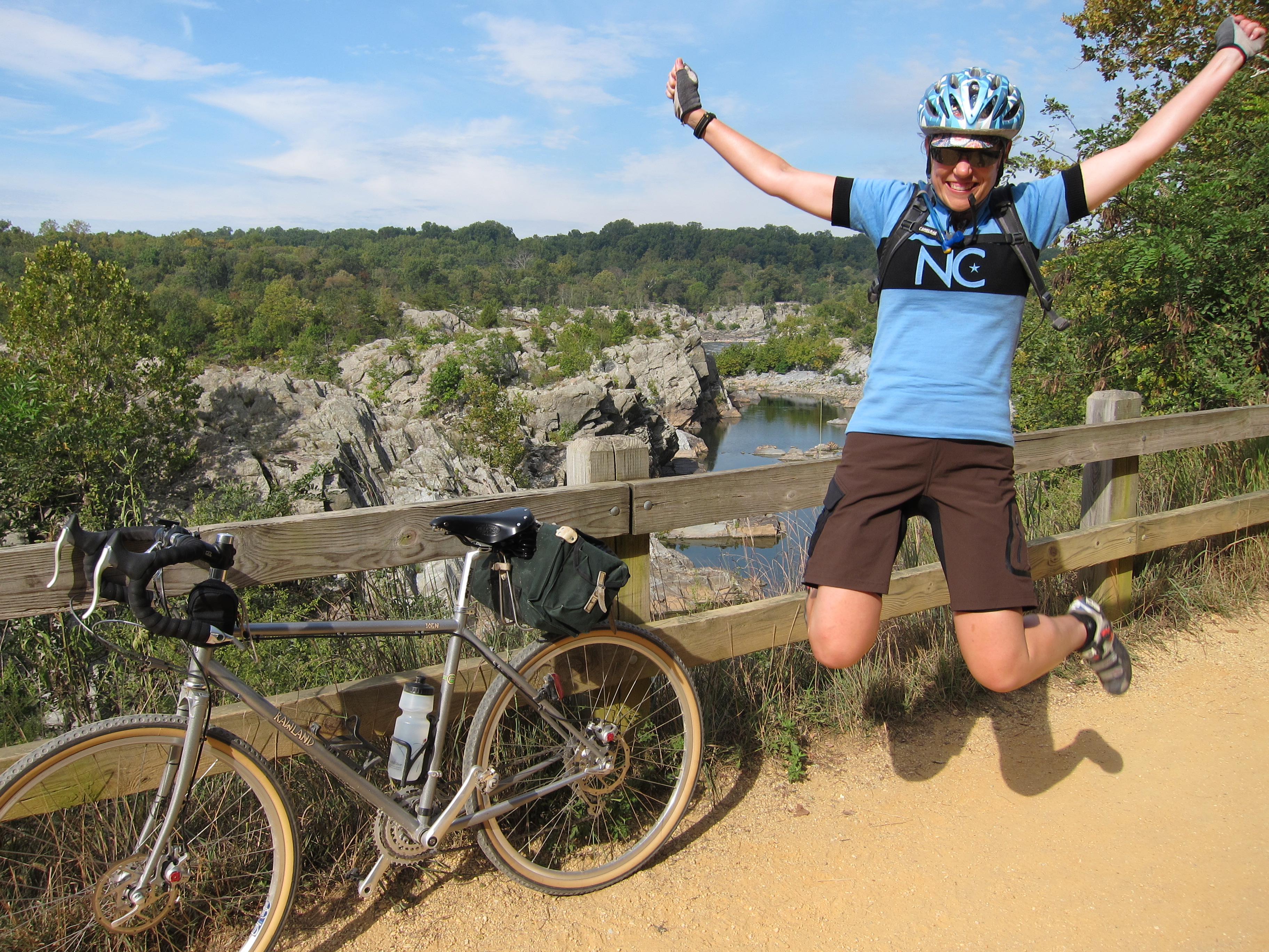 We departed around 8:30 in the morning with hopes of avoiding any big crowds, but our plan resulted in us crossing paths with a half-marathon going on in D.C. and a 20-mile run going off on the C&O. How about that for our plan totally backfiring? Oh well, we were in no hurry, our disc brakes came in extra handy, and it was fun to cheer on the runners. We even got a “Go bikers!” from somebody. Yeah!