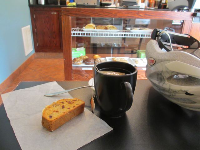 Back across town to hunt down this other coffee shop and luckily I found it. If not for the older gentlemen wanting to talk I would not have known there was another option for me at all today. Awesome. The owner of this cafe (Kathleen) was very nice and I enjoyed a good chat with her while I also enjoyed her homemade cranberry-orange-walnut biscotti with my tea. I’d like to stop back here again sometime.