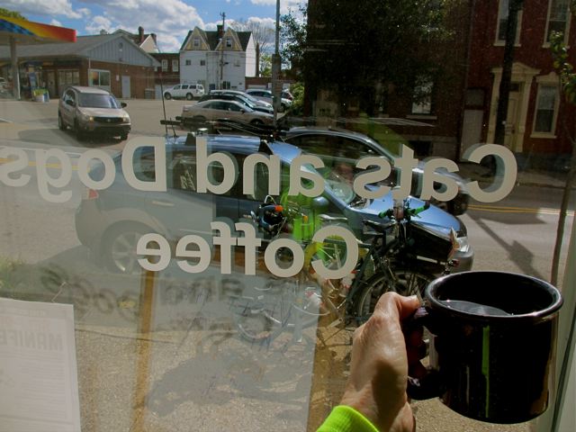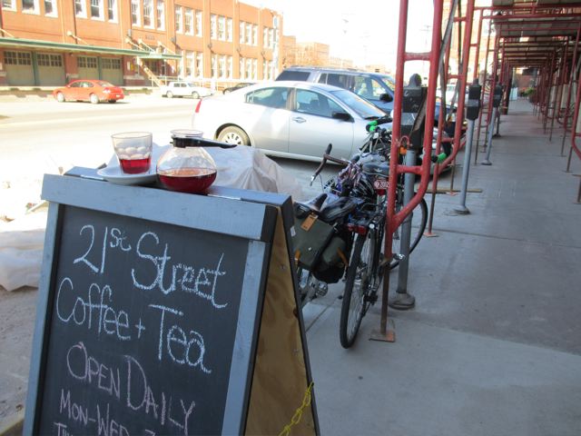 21st Street Coffee and Tea moved from 21st Street to Smallman near 20th Street. I like the new location, but it’s not really done yet. Construction going on all around them also. I told them they needed to look into some bike racks! They said they were actually working on it and might possibly have them inside — pretty cool.