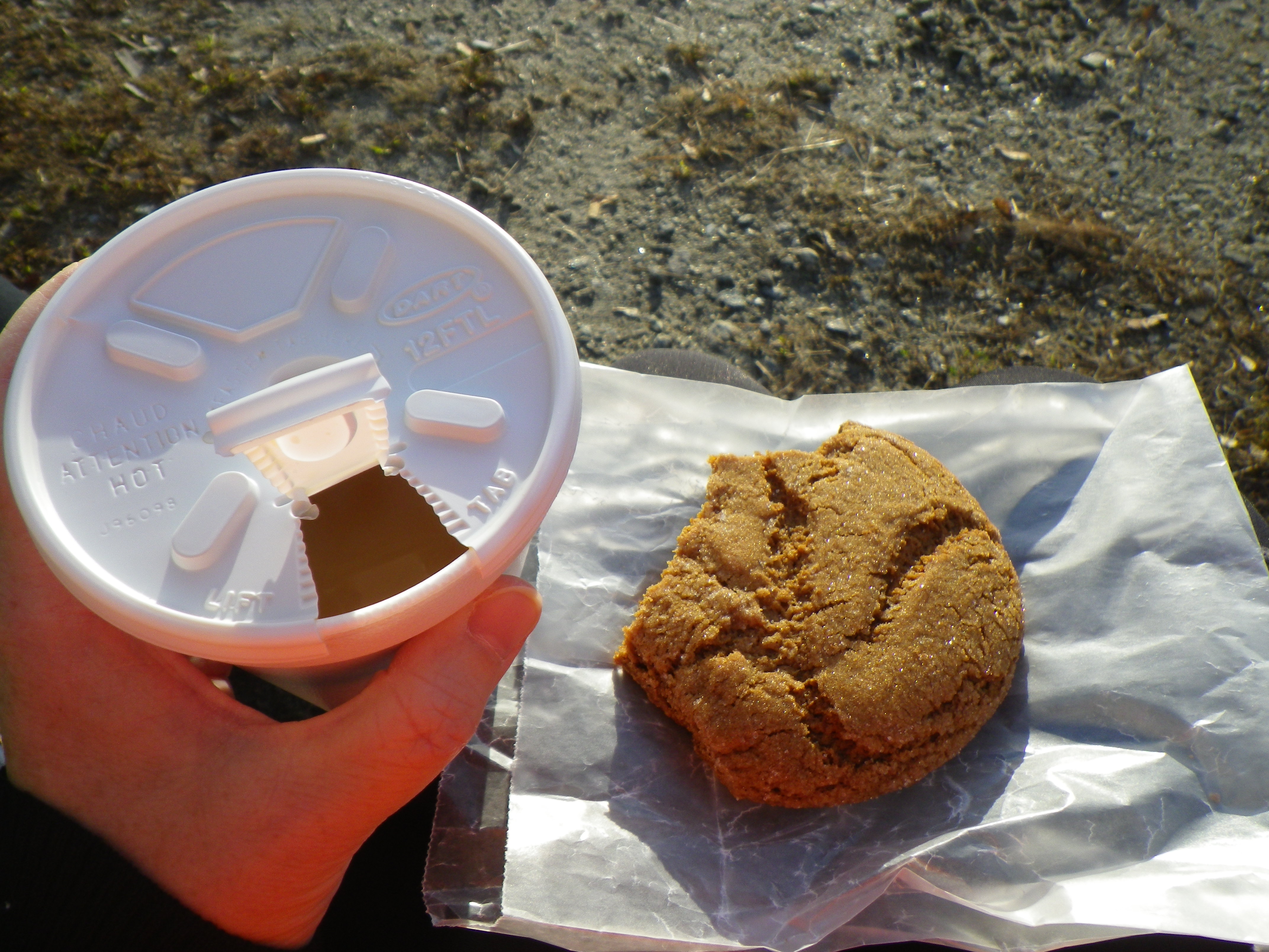 Normally we see lots of ducks and even a heron on this route, but no one was out today, too cold! They had already headed out farther into the Bay, where many overwinter. We were happy to reach our coffeeneuring spot and warm up with some hot coffee. I enjoyed one of their molasses cookies (the cakey kind I love) and Gary some salty chips. Normally we eat down by the River, but too cold today and we found a sheltered spot in the sun near the building (they do have sit-down inside).