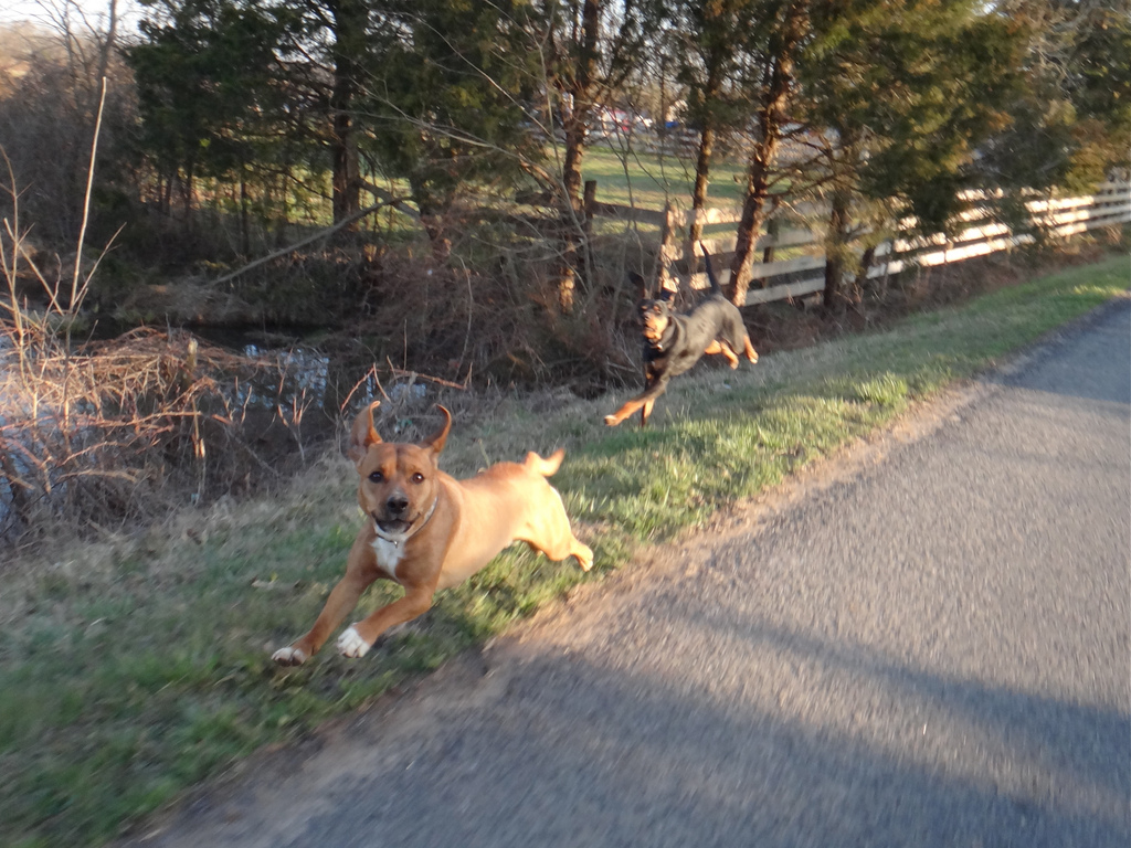 Running in the country is so different because you just don’t have the same speed as a bike. We were fortunate with Snoopy; she didn’t care as much about runners. Also, the other country dogs in our area were pretty friendly, although my dad did have one run about two miles and follow him home once.