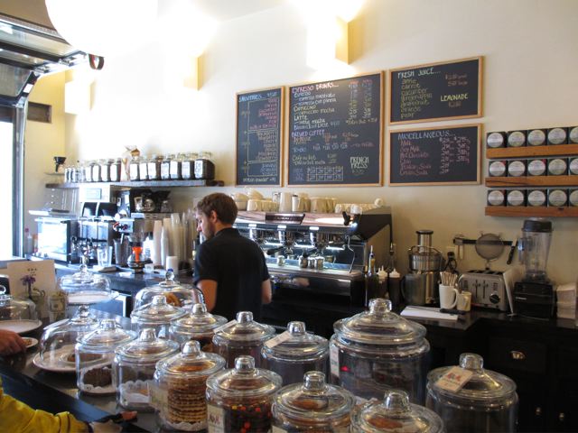 We stopped inside to ask for some more information on the sculpture and stumbled onto a bake sale. I’m not one to pass up homemade baked goods easily, so we indulged in fresh, kosher pastries and then continued down Forbes Ave to Braddock Ave and past Frick Park. We thought the coffee shop was on the left so we passed right by it looking the wrong way.