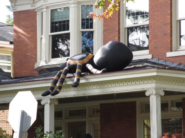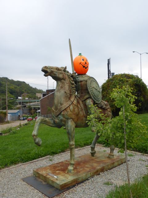 We left there on some side roads to join the trails in Frick Park that lead down to the Monongahela River. By then it was in the 70’s and sunny and seeing the Halloween decorations out seemed wrong.