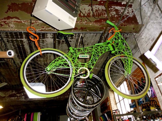 From there we swung over to Thick Bikes (recently voted Pittsburgh’s number one bike shop by readers of the City Paper) so RC could look at some new pedals. Took this photo of one of their really cool custom bikes.