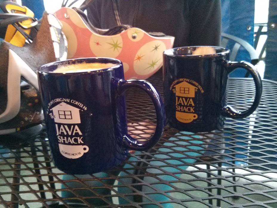 We capped off a neighborhood exploration/errand ride with lattes at Java Shack. Hit up the library, checked out some houses, stopped for beans and rice.