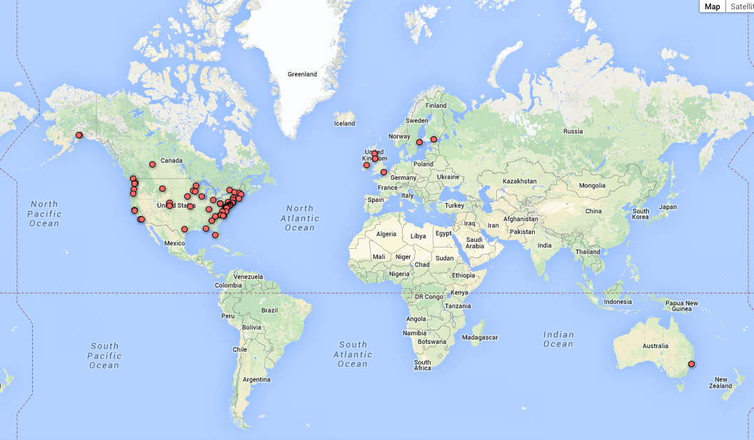 Some of you may recall seeing Google Fusion Tables in 2012. Andy, of the Regional Office of Coffeeneuring in North Carolina, created a similar World Coffeeneuring Map to the one you see in 2013.