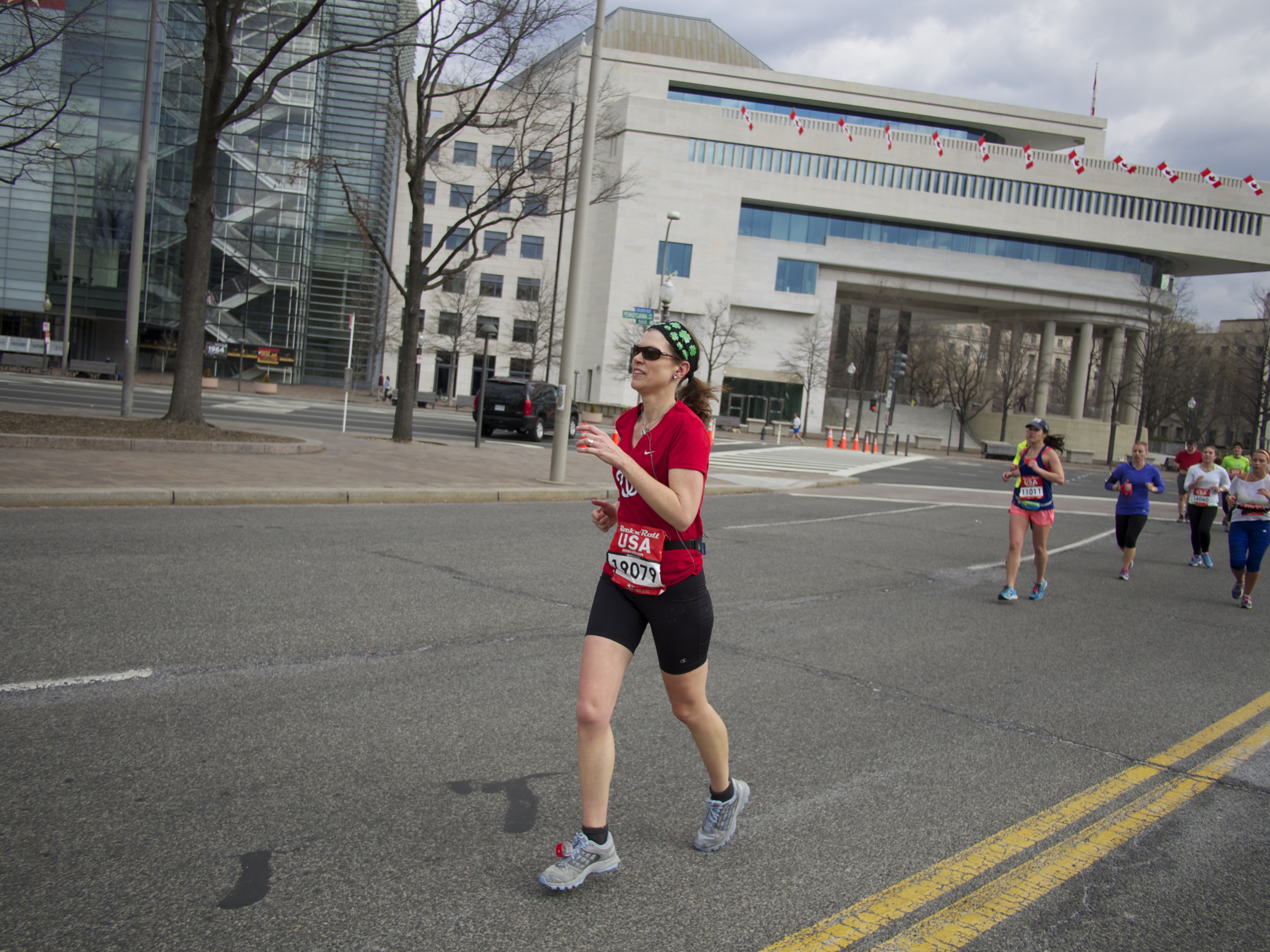 We made our way up the long steady Minnesota Avenue hill, one of my favorite parts of this course. It is the last big challenge of the marathon, you can see the people stretched out in front of you, and you get a good downhill after you crest the top. From that point it’s a flat to downhill jog to the end.