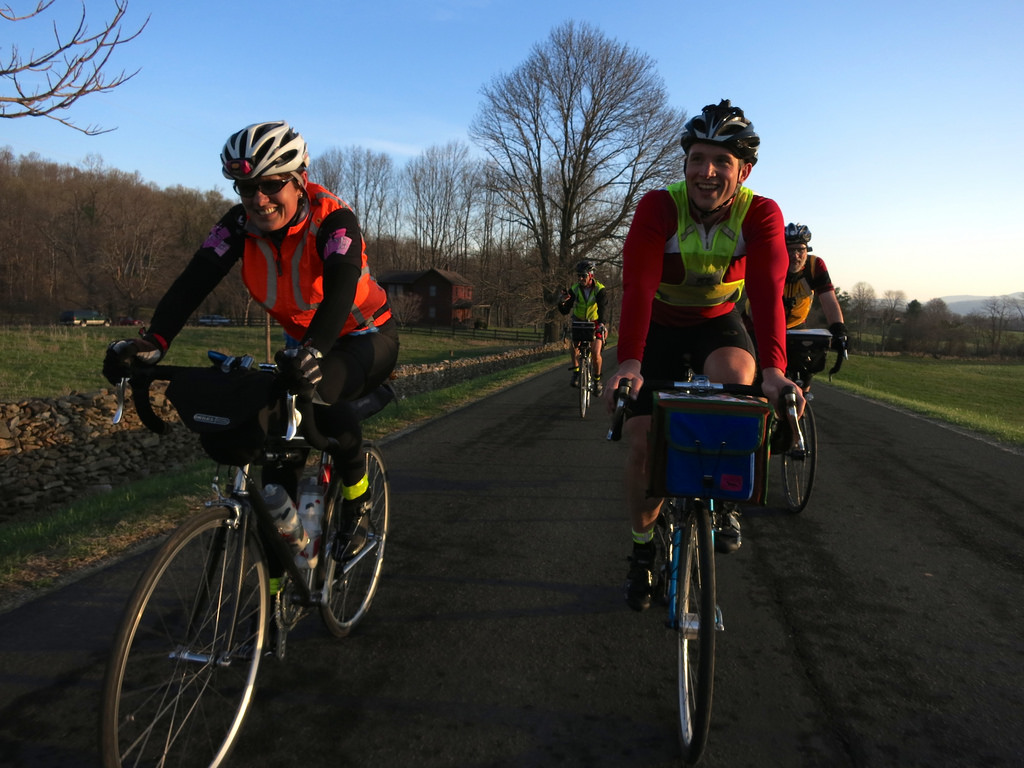 The ride begins with warmth in the air. After a couple hours of darkness, the sun rises and bounces down the roadย with us. It must sense thatย we’re in for a 190-mileย day of play.