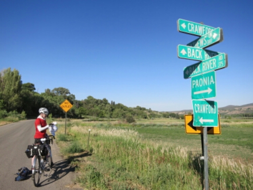 Felkerino and I left the comfortable town of Paonia today, meandered through farm country to Hotchkiss, and over dry and somewhat desolate territory to Delta.
