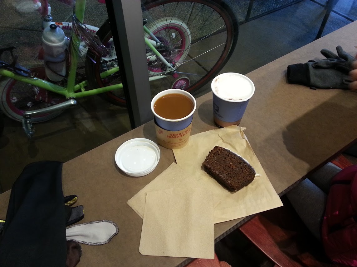 Another Oakland->Hot Metal->Southside trail ride, with various and sundry digressions. Hot chocolate for the kids, mocha for myself, and some form of lemony vanilla home-made stuffed cookies which, if there were any justice in the world, would put the Oreo brand out of business in one fell swoop.