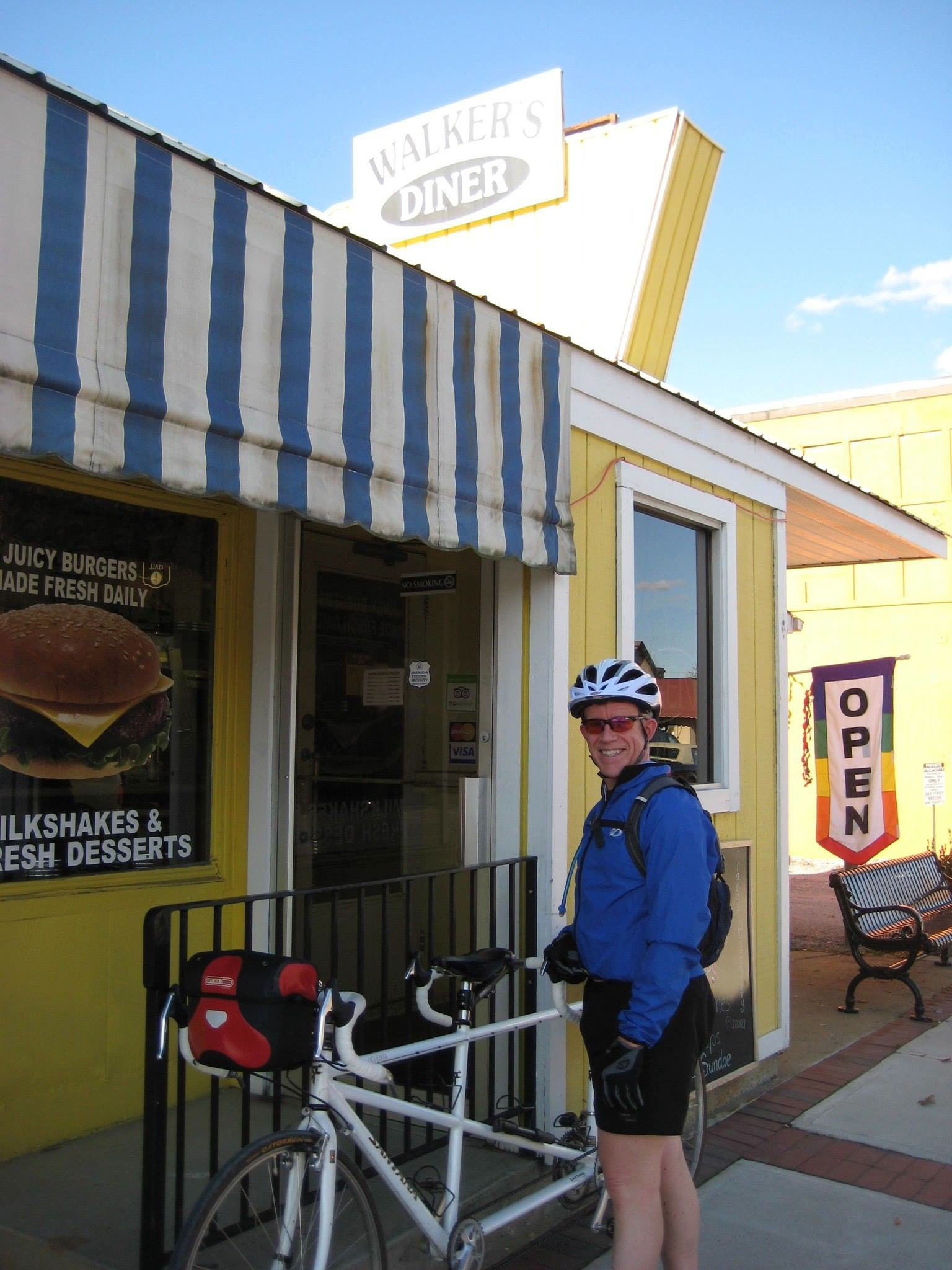- a detail or two about your coffeeneuring ride: Went to the town of Farmville and rode a portion of High Bridge Trial State Park. Then rode back to Farmville to go to the very cute Walker Diner. Had two regular coffees and some wonderful peach crisp and, come to think of it, a delicious veggie wrap, but not necessarily in that order.