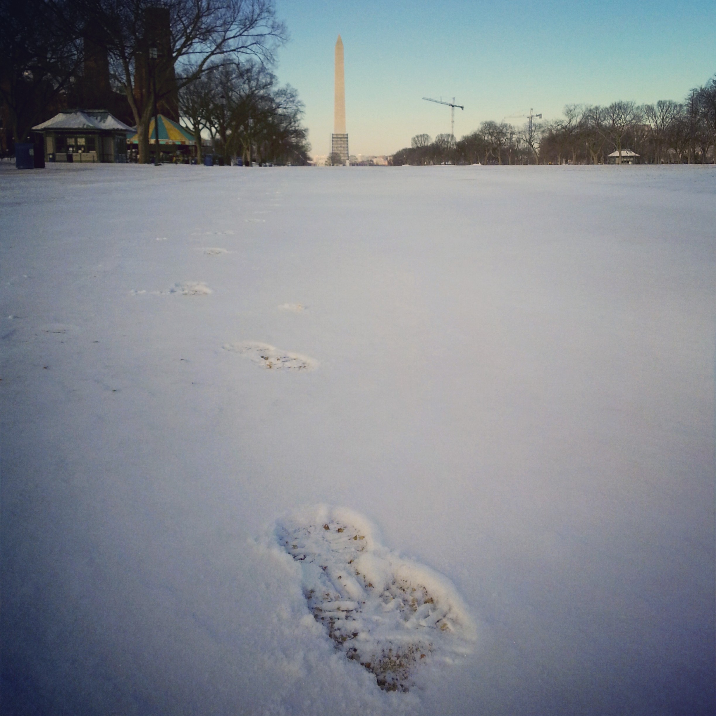At the end of January, it snowed again, slightly more than a dusting. I maintain that morning commutes are best. Whenย can you say you made fresh tracks on the National Mall? Only on the morning commute.
