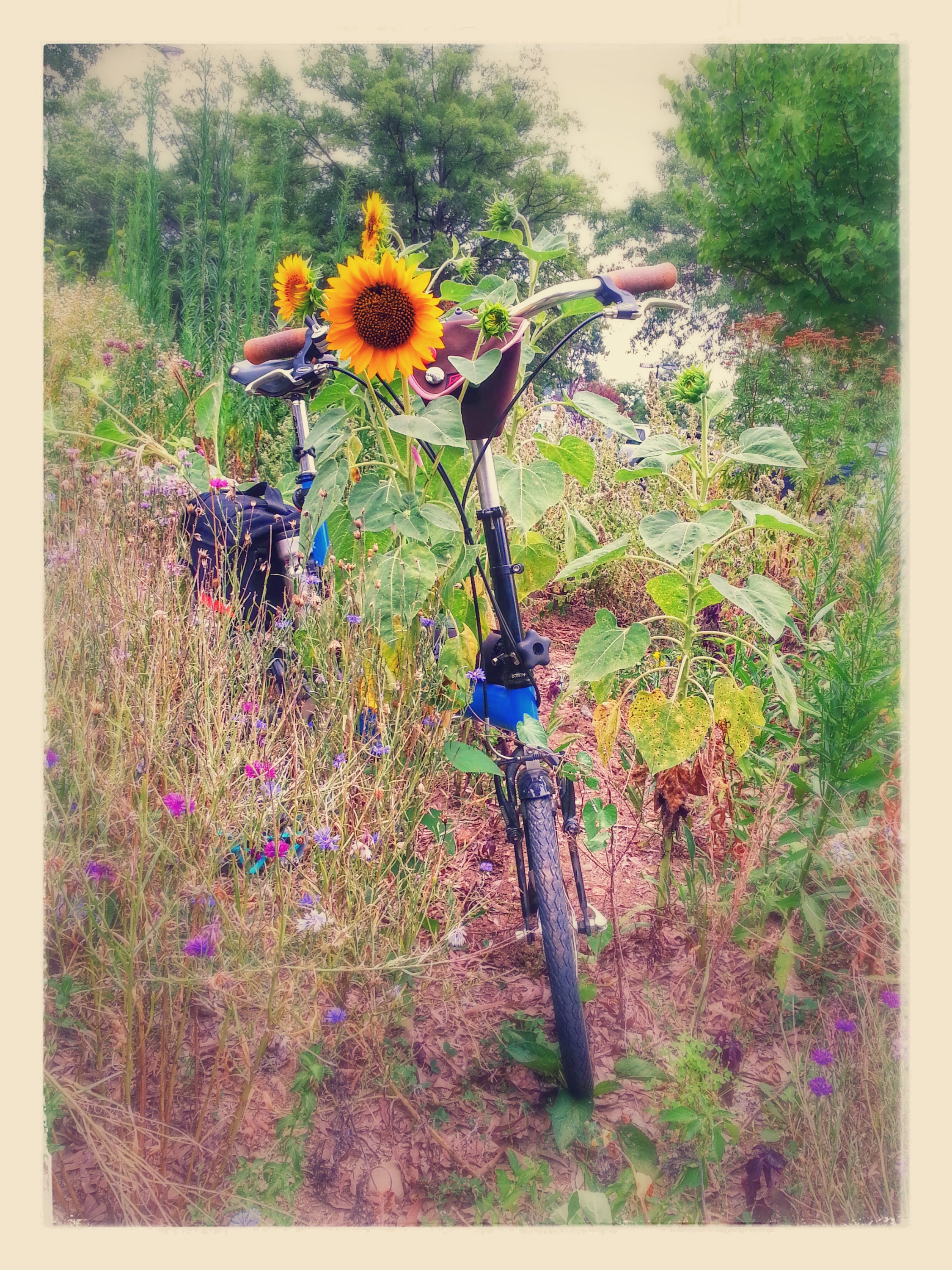 I don’t know what I was thinking by inserting my Bike Friday here. Not only was it dense with vegetation, it was teeming with hungry mosquitoes.