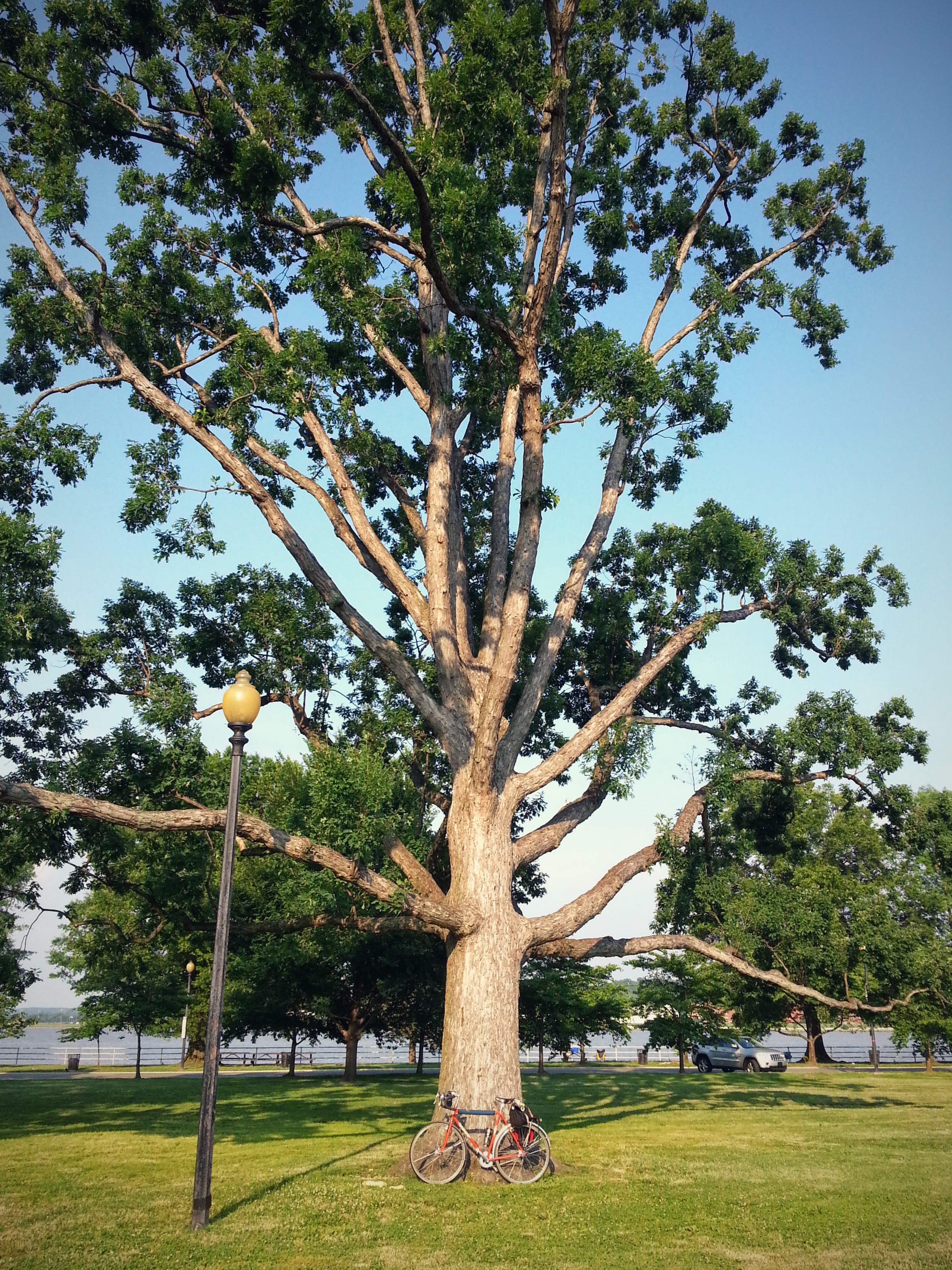 One afternoon, as I rode Hains Point to spin out my brain, I spied this tree. I had never noticed it before, but it’s quite obvious that it’s been on the Point a long time. Shame on me. It’s beautiful, no?