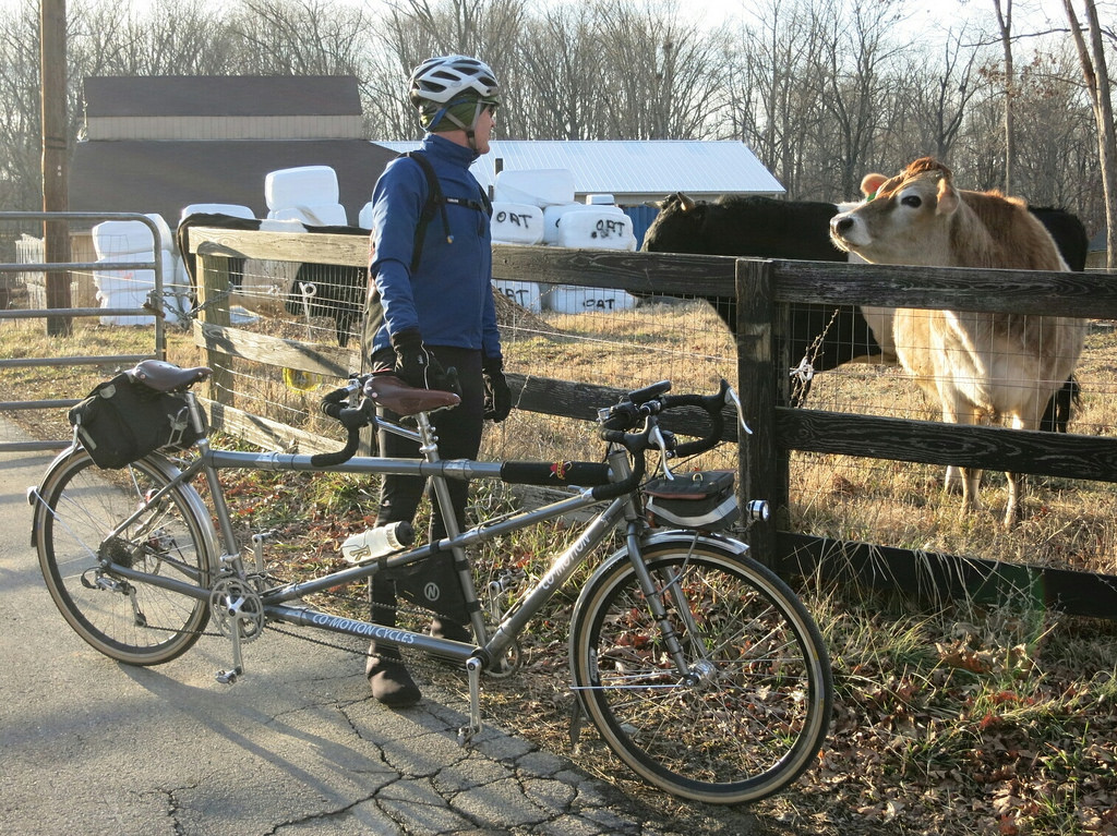 As I rode along looking alternately at Felkerino’s backside and a somewhat snotty top tube resulting from my runny nose, I was wholly grateful for the hours and miles together on our beautiful, sturdy, and maybe somewhat dirty, tandem.