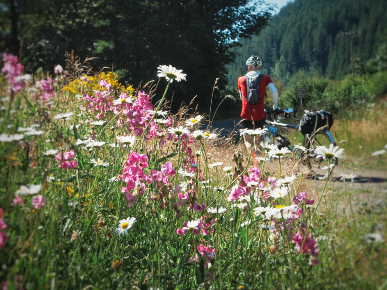 Cars and trucks gave us room, and we reached the final one-mile stretch to the Santiam summit, where there was some road construction with a flagged and single lane passage. This worked well for us because we rode through peacefully after all the cars which gave us open road on the other side to begin descending, and we knew the cars would be passing us in groups.