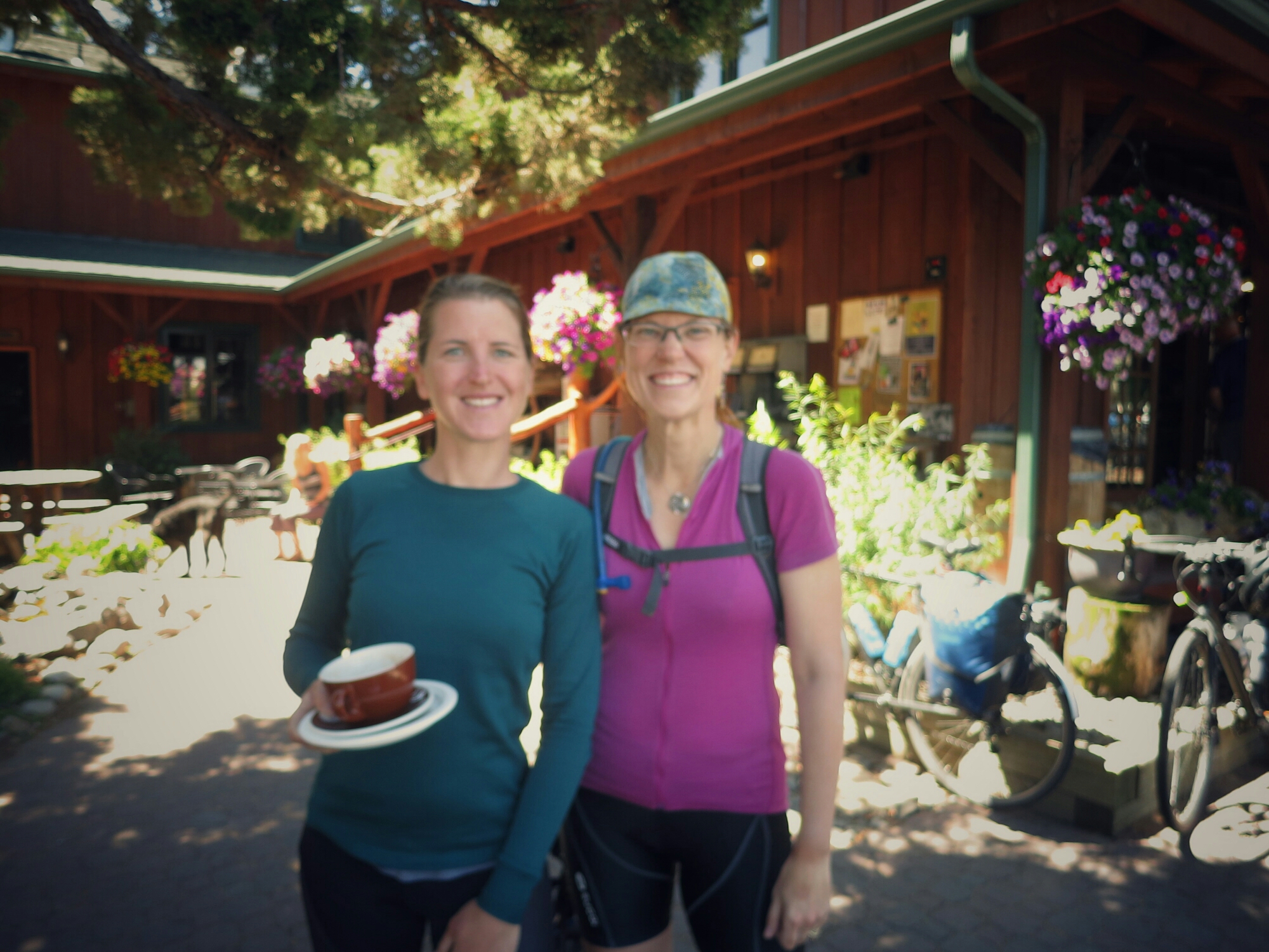 In Sisters, we bee-lined to Sisters Coffee and immediately spotted two touring bikes. Yay, touring cyclists are here, and we looked around to see who the bikes belonged to. It was the same couple from Vancouver, British Columbia, who we had met during our ride through Crater Lake Adventureland Park!
