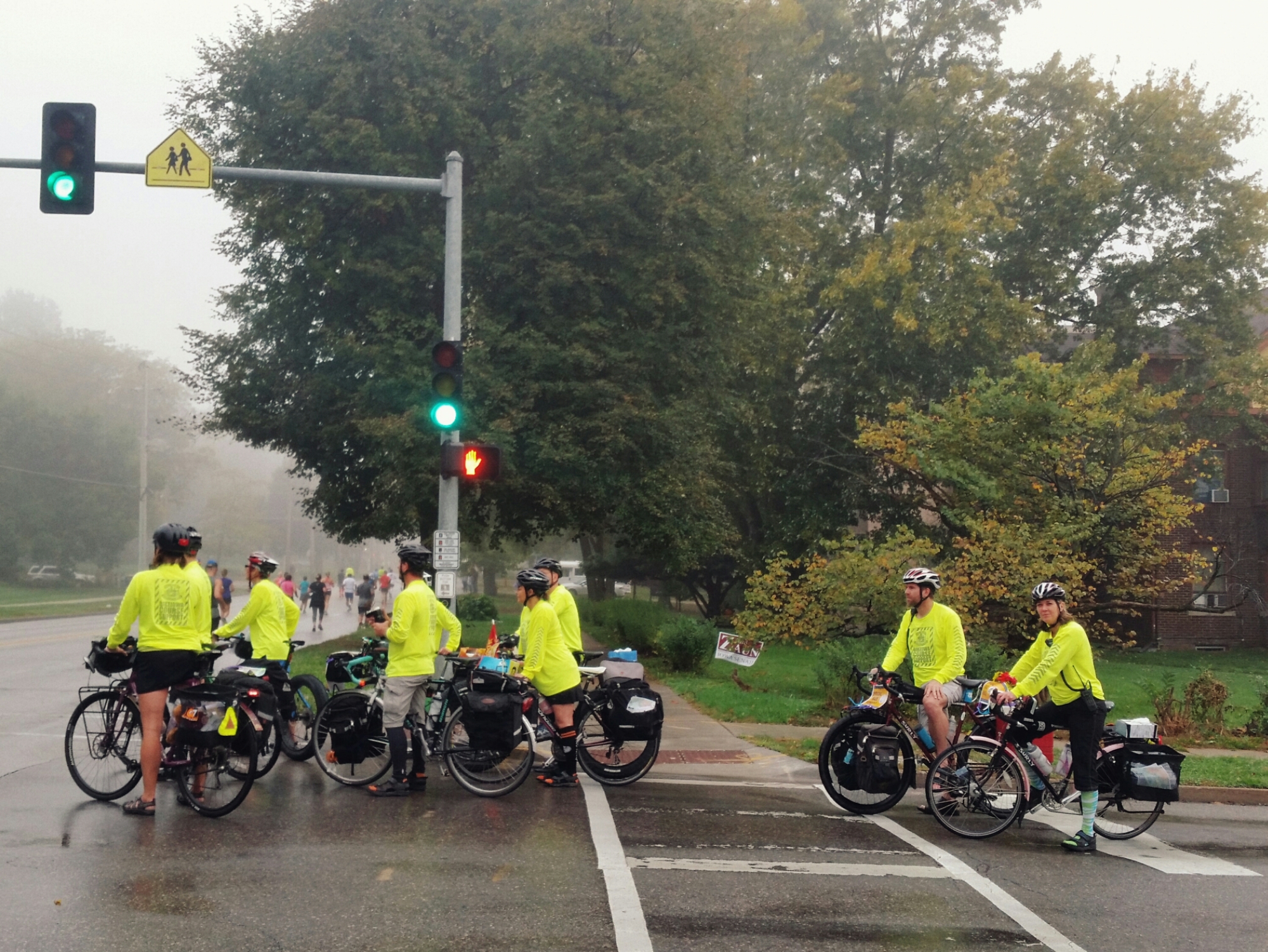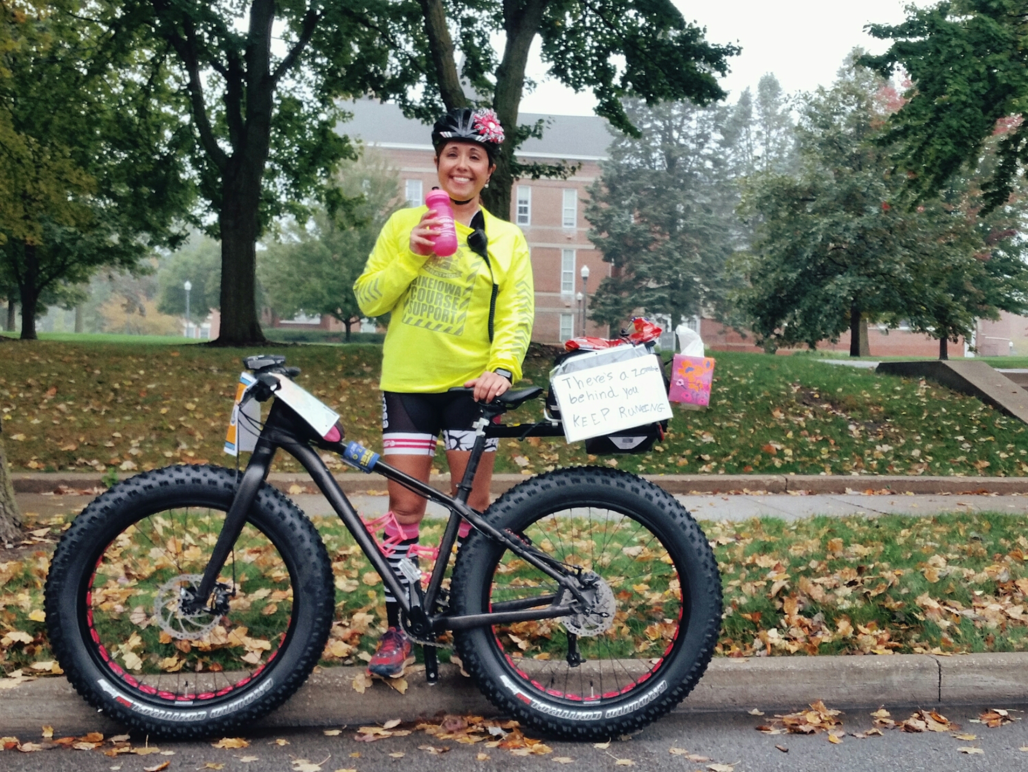 The Des Moines Marathon also uses BIKEIOWA support volunteers, who ride fully loaded along the course with snacks, tissues for runny noses, and other supplies. They thoroughly enhanced my run, both from a practical as well as aesthetic perspective. I saw a lot of lovely steel frames, fenders, and bags today.