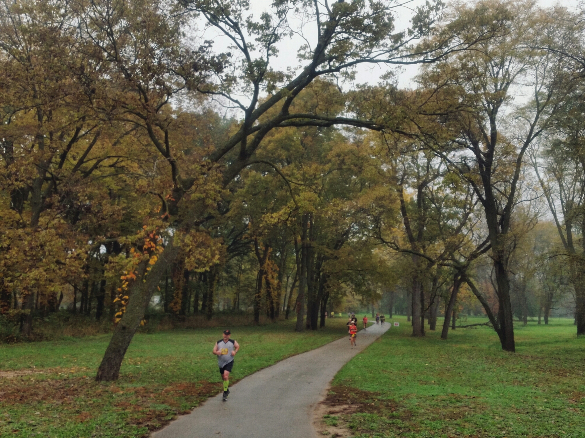 The marathon course is consistently rolling, particularly in the first half, but the grades are nothing steep. For this edition the foliage had begun to turn, but leaves still clung tight to the trees. In contrast to something like the Marine Corps Marathon, there is plenty of place to move about.