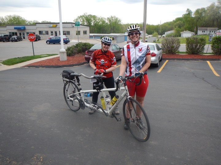 Myself and my spouse and tandem partner on an Iowa Populaire in 2015.