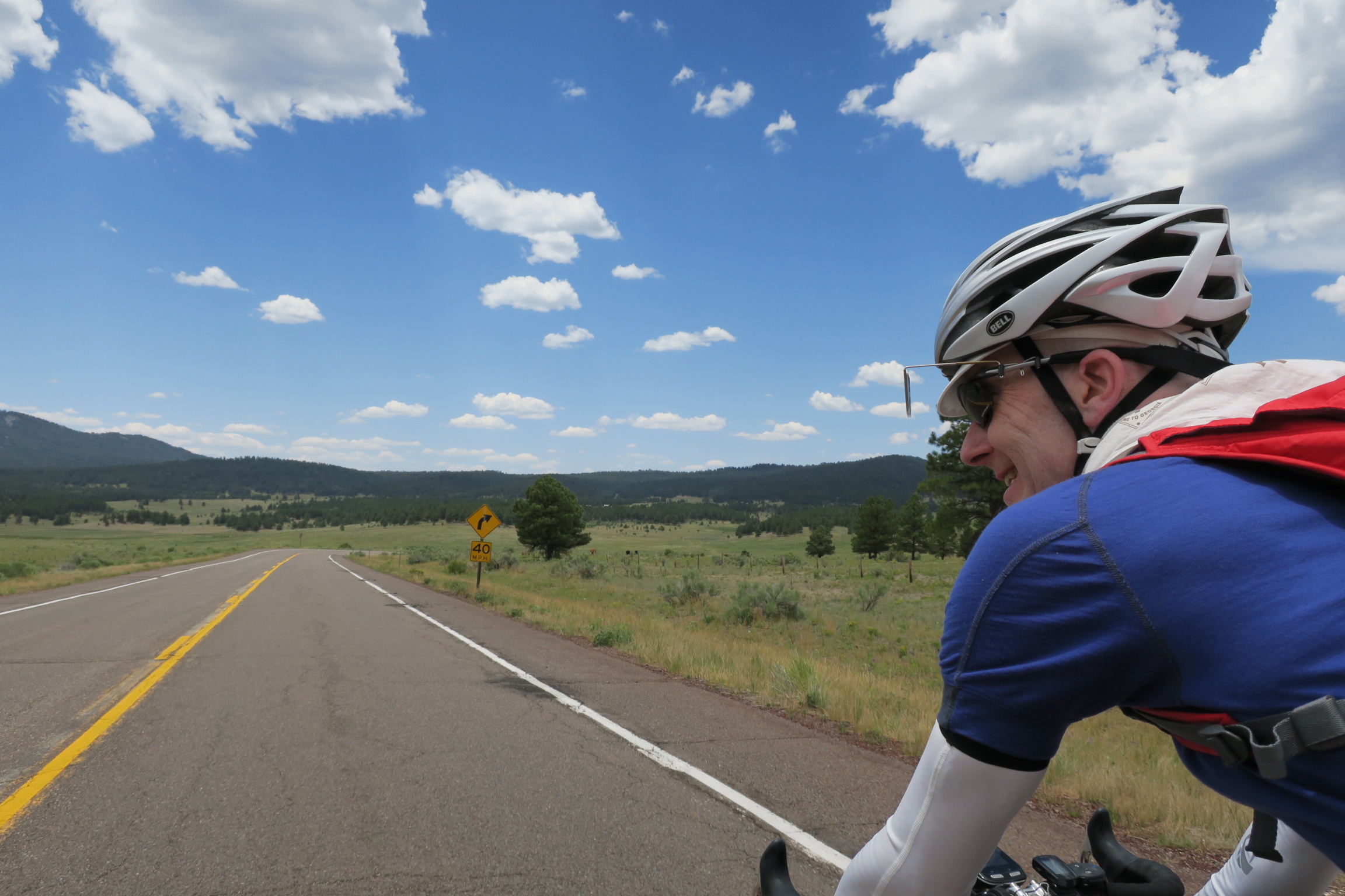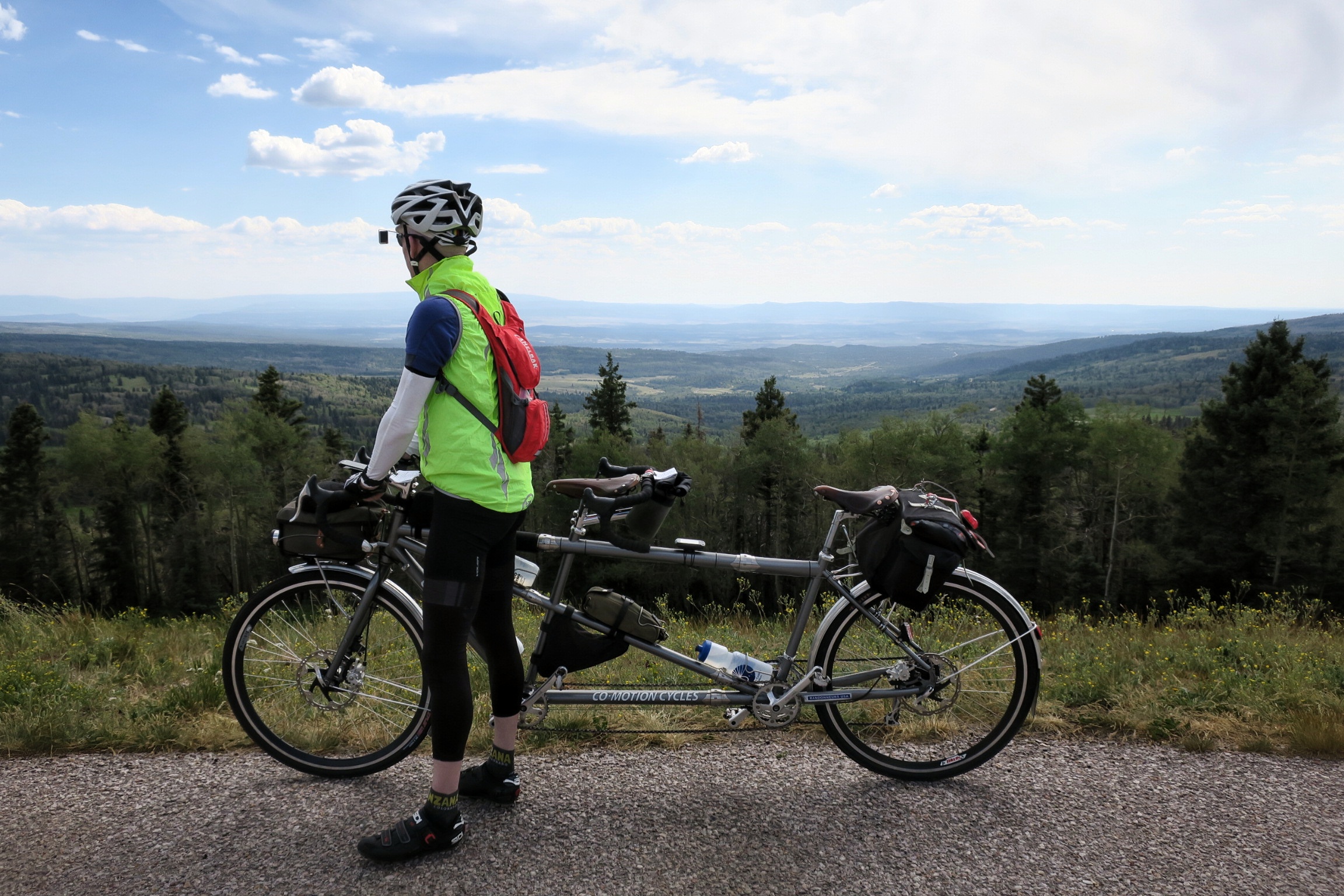 This was our longest day so far, at 98 miles. We crossed over two, anonymous peaks on our ride from Taos on US 64 – possibly a third if you count the false summit of the second peak.