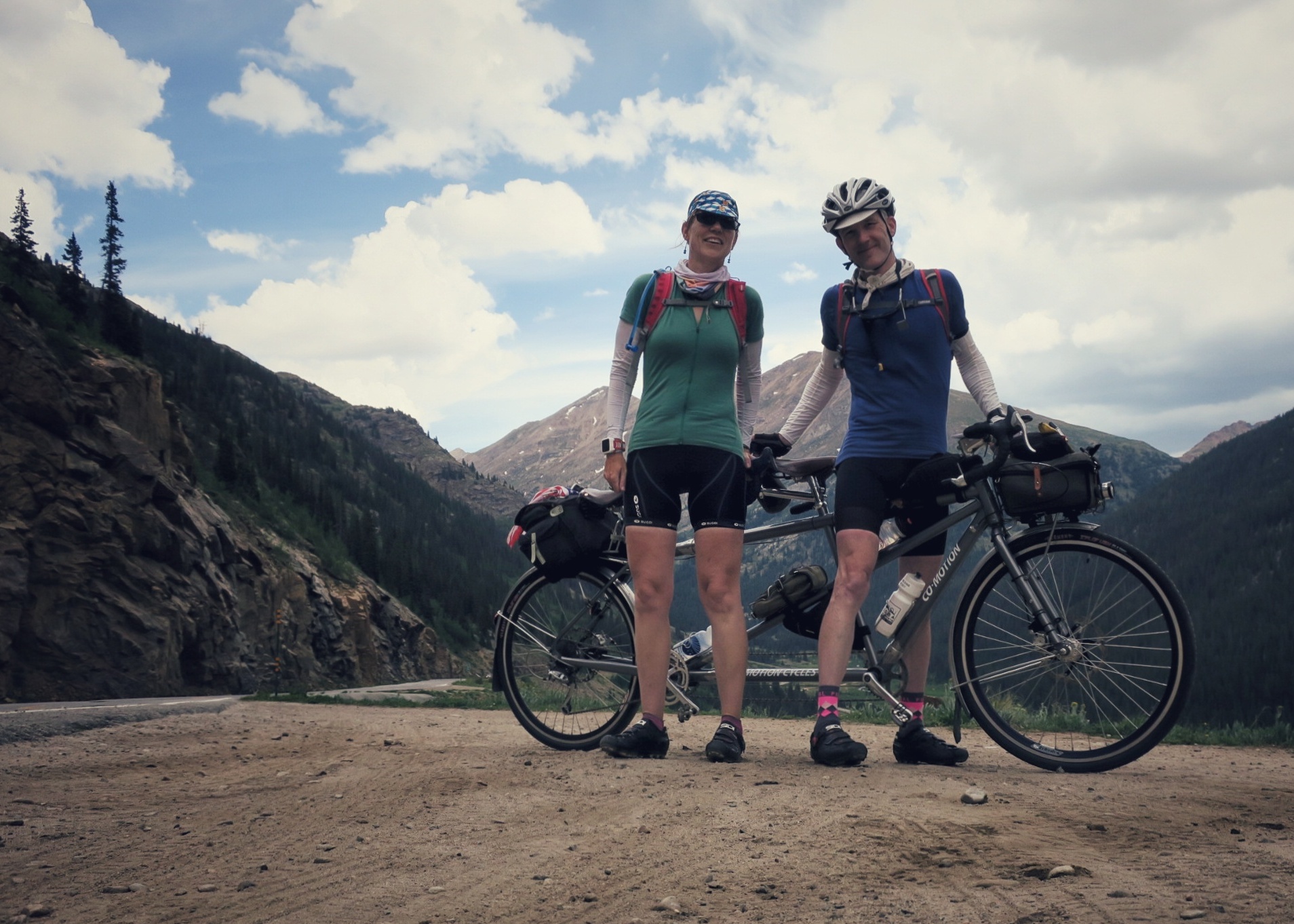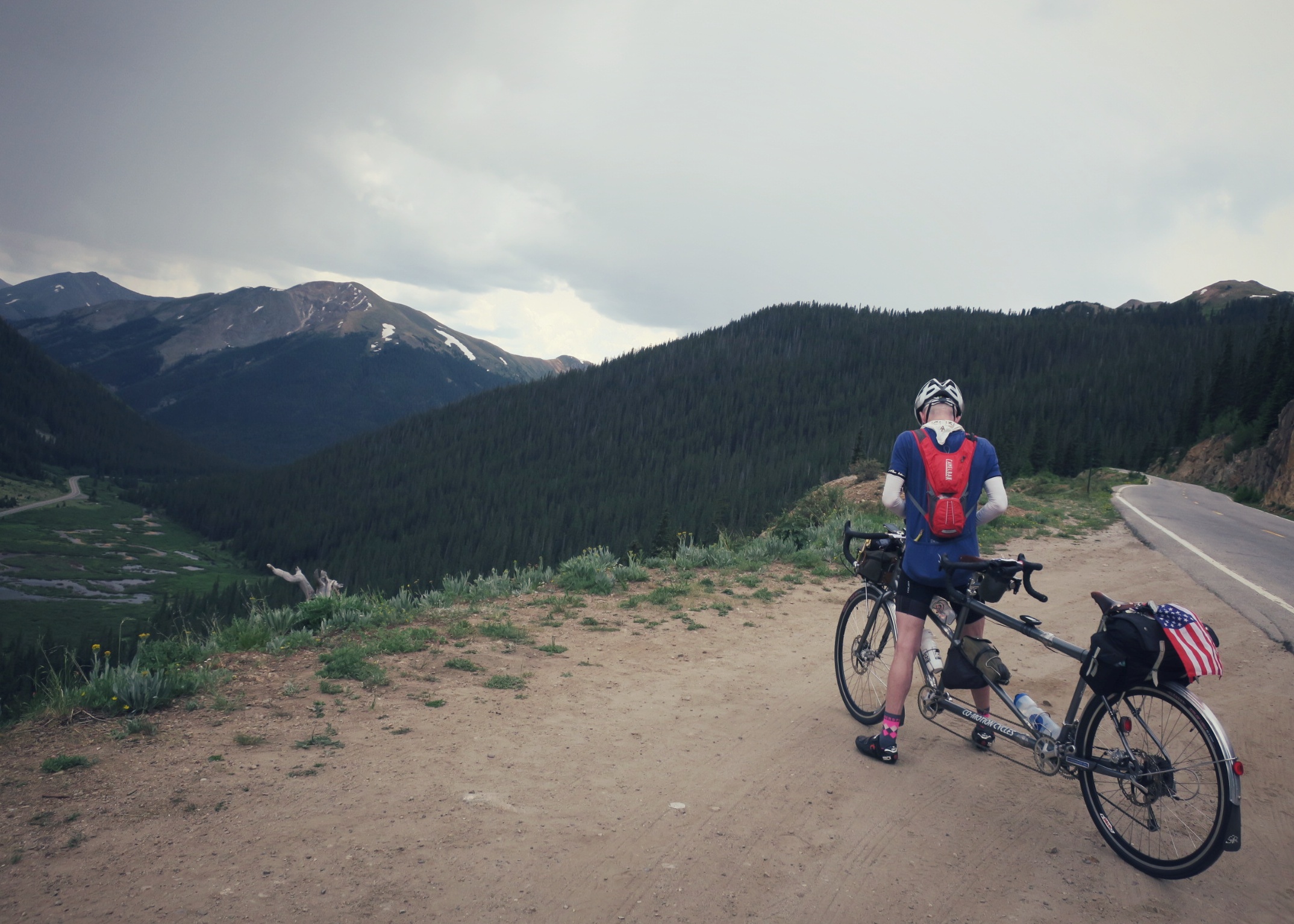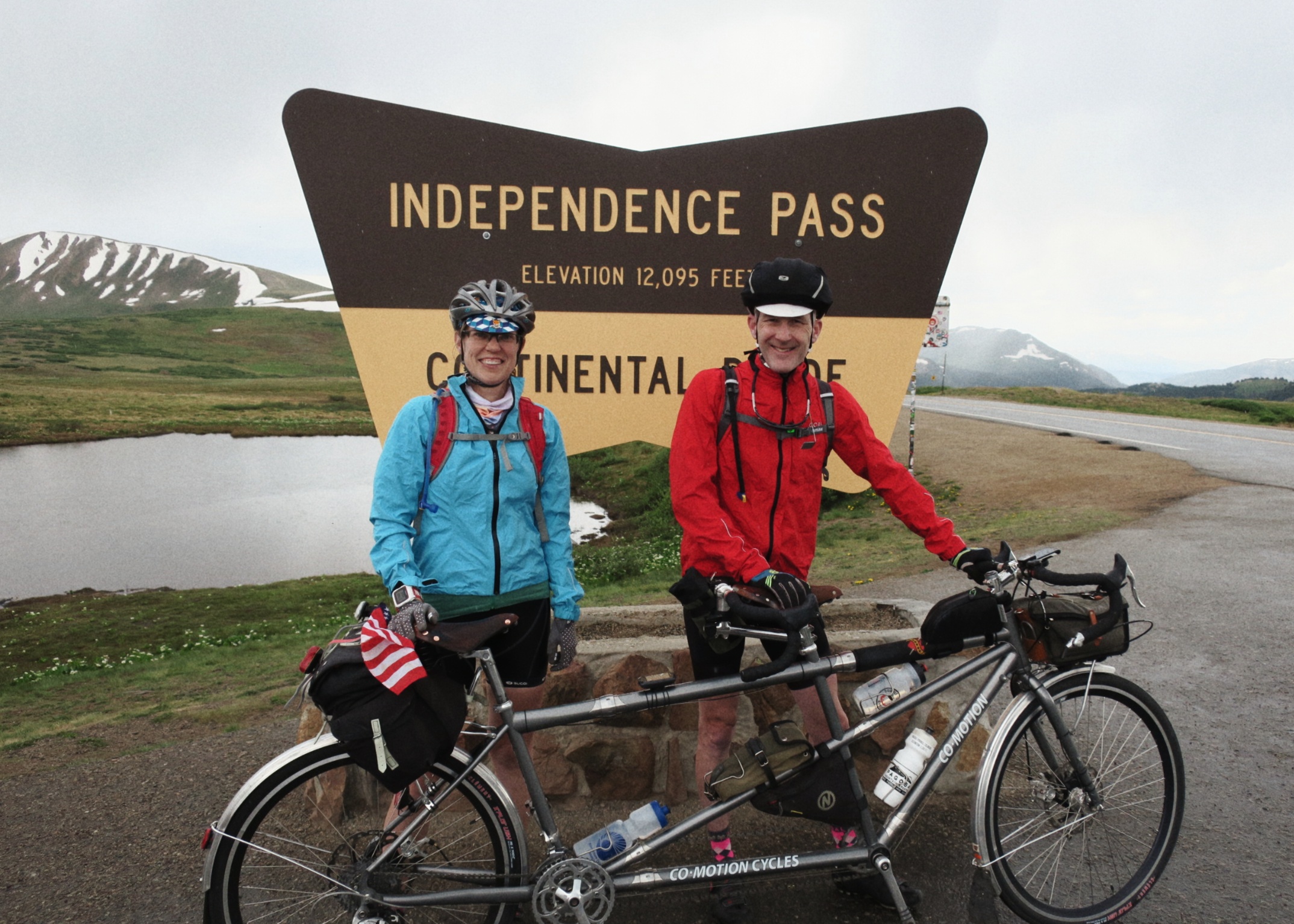 Oh the miles passed slowly on our tandem. Despite my discomfort and occasional frustration with how the tenths of miles were adding up, Felkerino and I plodded away diligently. The climb itself was fantastic. Independence is so big, green, and gorgeous. You can hear the flow of creeks and waterfalls as you make your way up. The yellow and orange of wildflowers and Indian paintbrush (I think that’s what it was) pepper the hillsides when the evergreens allow. It is a spectacular climb and I felt like the mountain welcomed our two-wheeled presence.