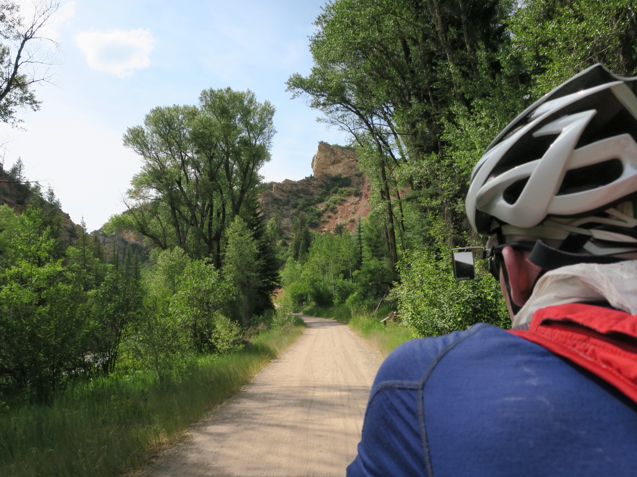 We relaxed in Aspen for a couple of hours, and at the coffee shop we encountered the one other cyclist who had been climbing in our direction – showered and changed from his ride. We had fun sharing our tour notes with him, and then we clipped back in for the steamy 30-mile downhill trek to Carbondale via the multi-use path that connects these two towns.