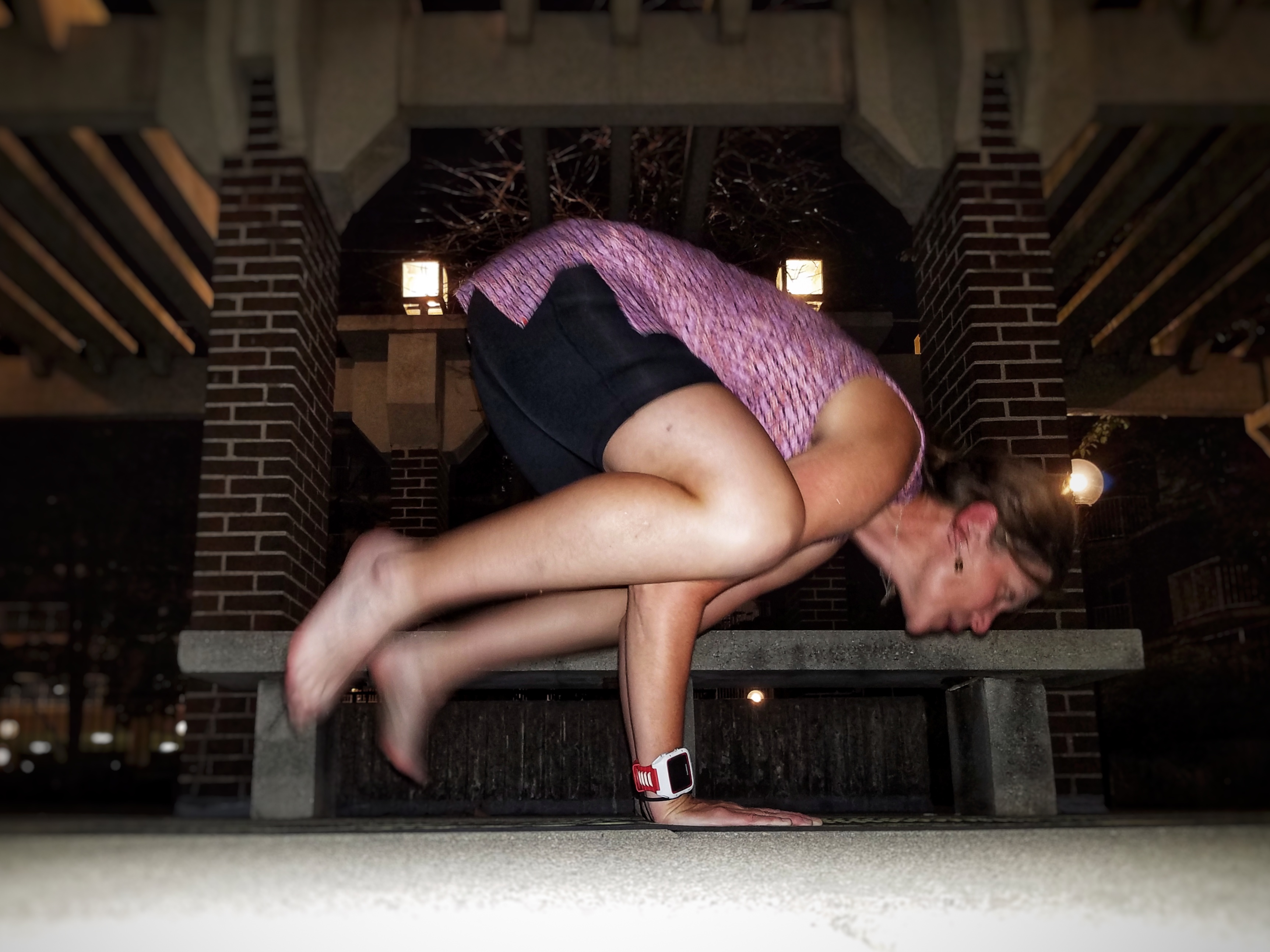 My heels glanced against the pillar behind me and then suddently I was holding a headstand! Incredulous, I dropped my legs down so I could try again and prove that it wasn’t a fluke. Again, my legs rose above me and I confidently held the pose. Headstand!