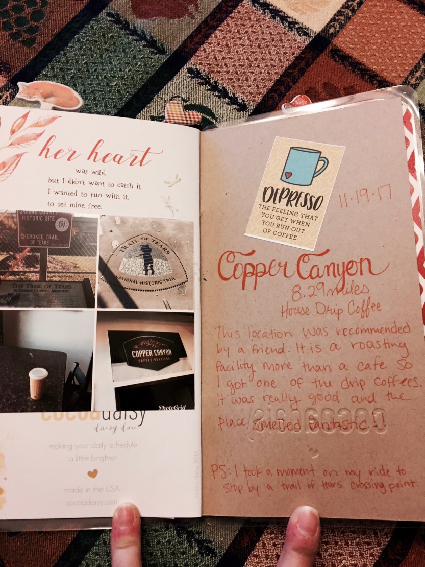 Wondering how the Coffeeneuring Challenge really works? Pondering what kind of theme you might use to guide your coffeeneuring outings? Today the blog features Erin, a Missouri coffeeneur, who used a lovely combination of pen, paper, and pictures to log her coffeeneuring travels.