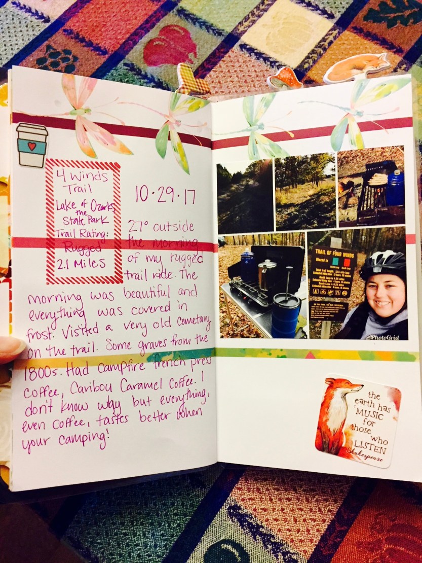 Twenty-seven degrees outside the morning of my rugged trail ride. The morning was beautiful and everything was covered in frost. Visited a very old cemetery on the trail. Some graves from the 1800s. Had campfire French press coffee, Caribou Caramel coffee. I don’t know why, but everything – even coffee – tastes better when you’re camping!