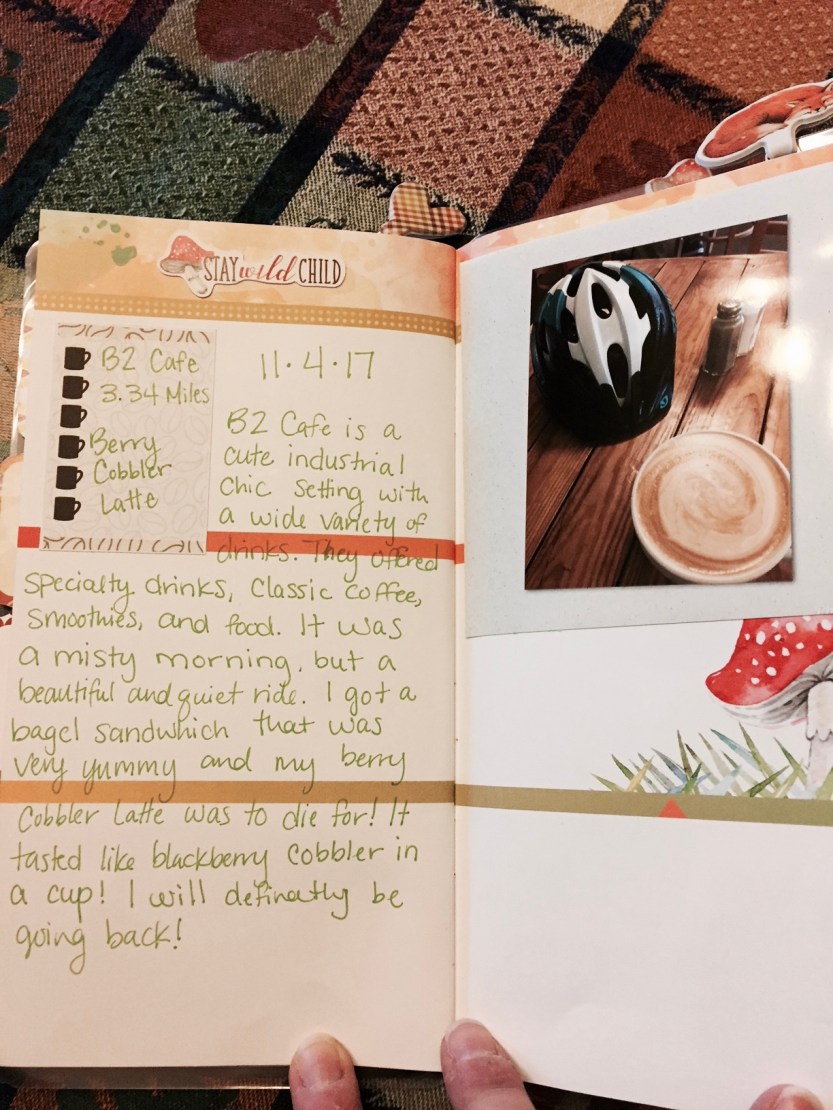 B2 Café is a cute industrial chic setting with a wide variety of drinks. They offered specialty drinks, classic coffee, smoothies, and food. It was a misty morning, but a beautiful and quiet ride. I got a bagel sandwich that was very yummy and my berry cobbler latte was to die for! It tasted like blackberry cobbler in a cup! I will definitely be going back!