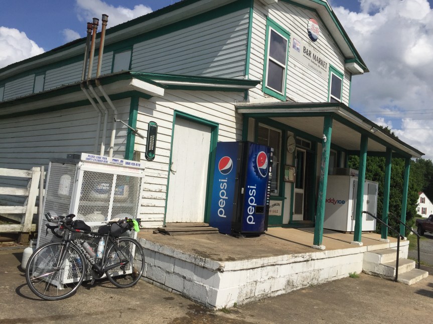 I stopped at a store in Etlan (mile 58) to get some iced tea – time to wake up! Ed and Mary were up the road from me at that point. Perhaps some of the most challenging climbing on the ride is right there. You peak out at about mile 60 just before a winding, fast descent towards the store in Syria.