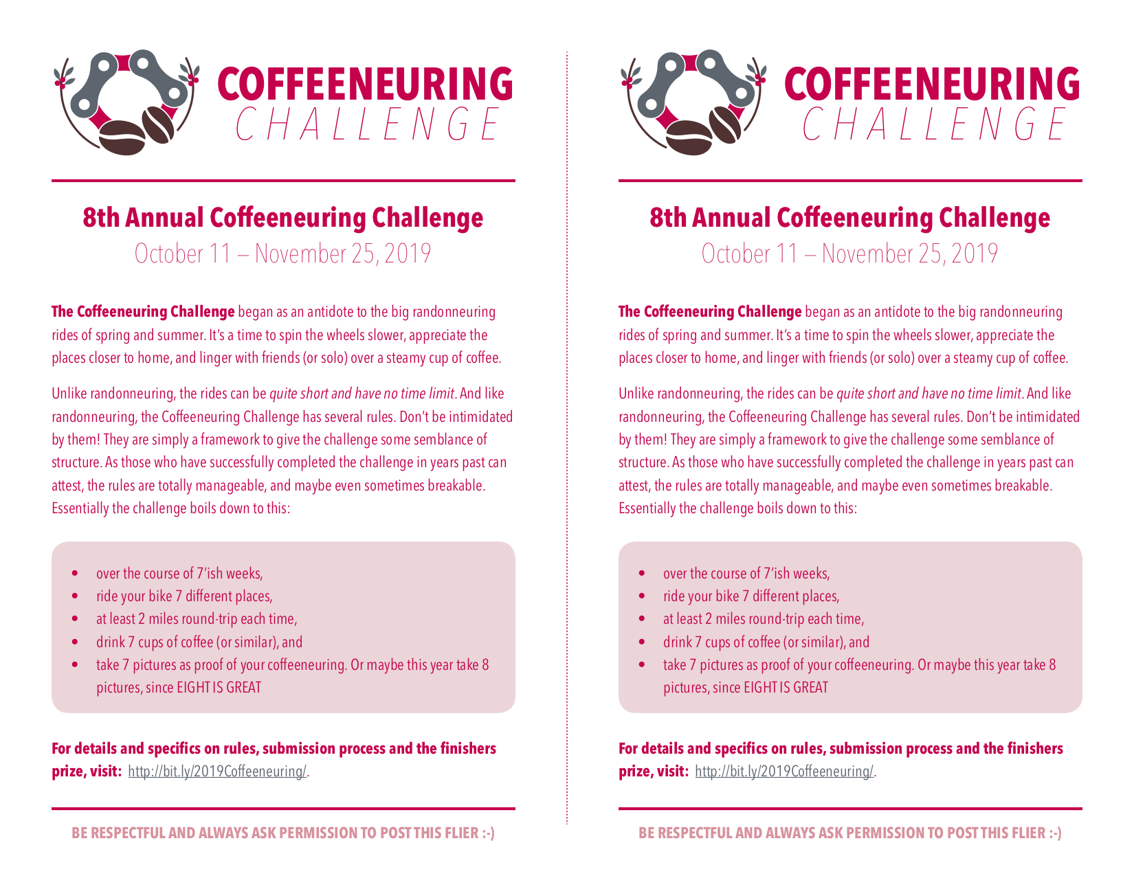 Have you ever tried to share the news of the Coffeeneuring Challenge with other people or businesses? It’s riding your bike to coffee – only more! And with many rules! And…
