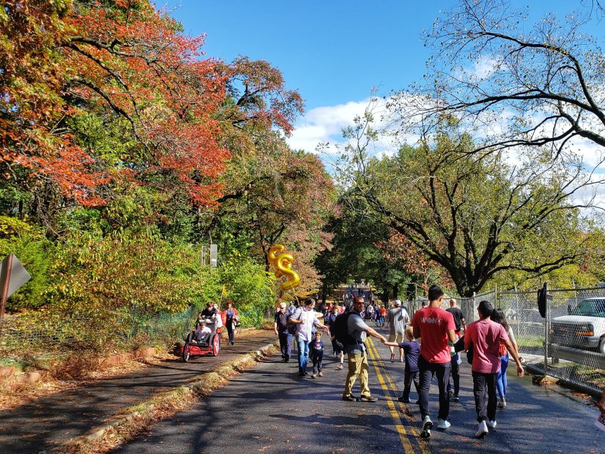 I liked splitting off onto Canal Road for the bonus miles, since as roads go, it’s a nice one. We saw the front-runners on the out and back, I saw my friends who had also signed up, and the trees alongside the road gently shed their colorful leaves onto us in various parts.